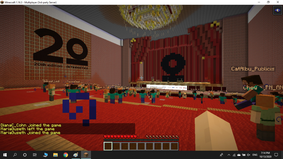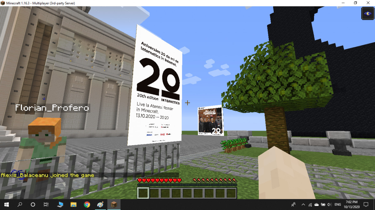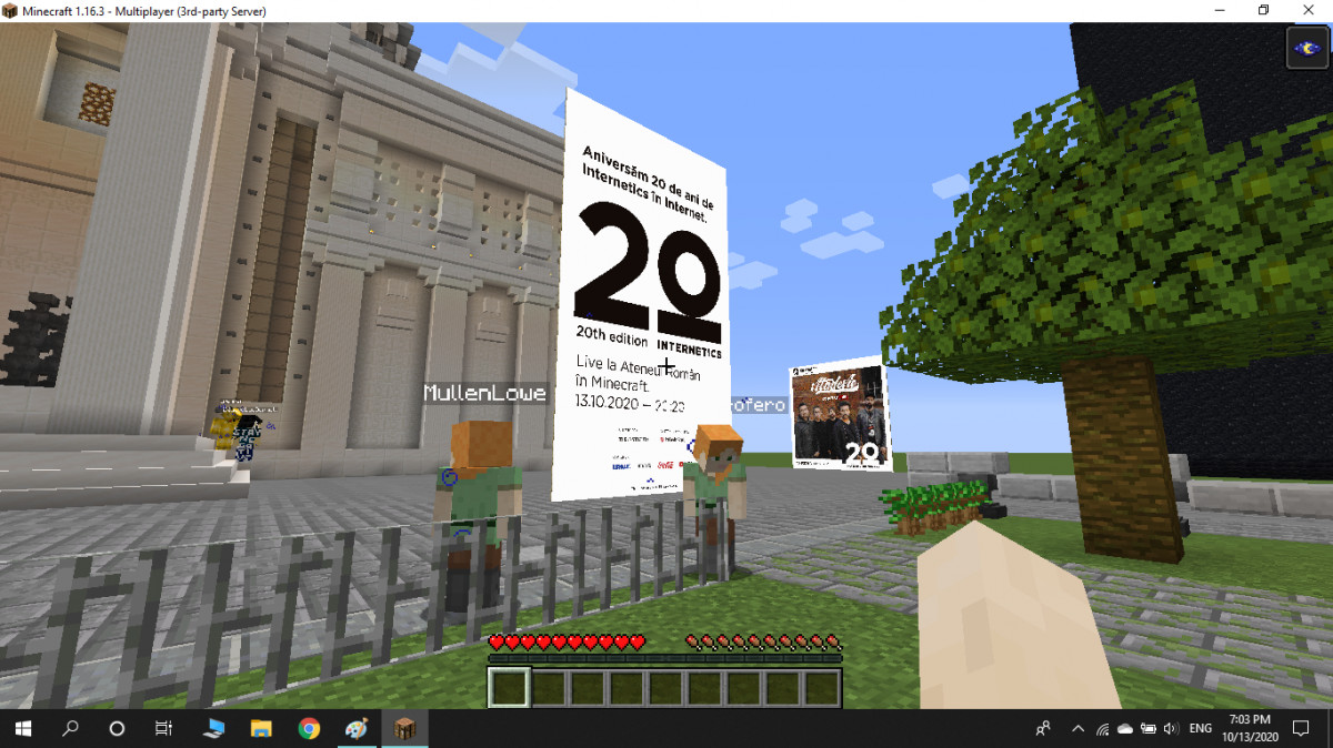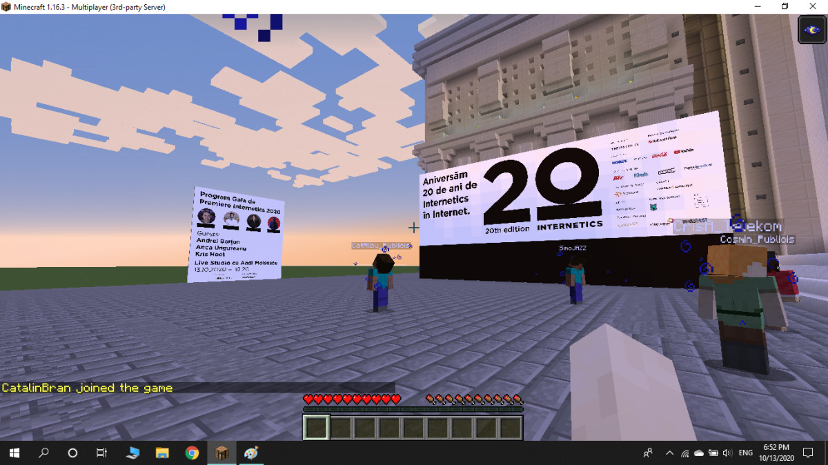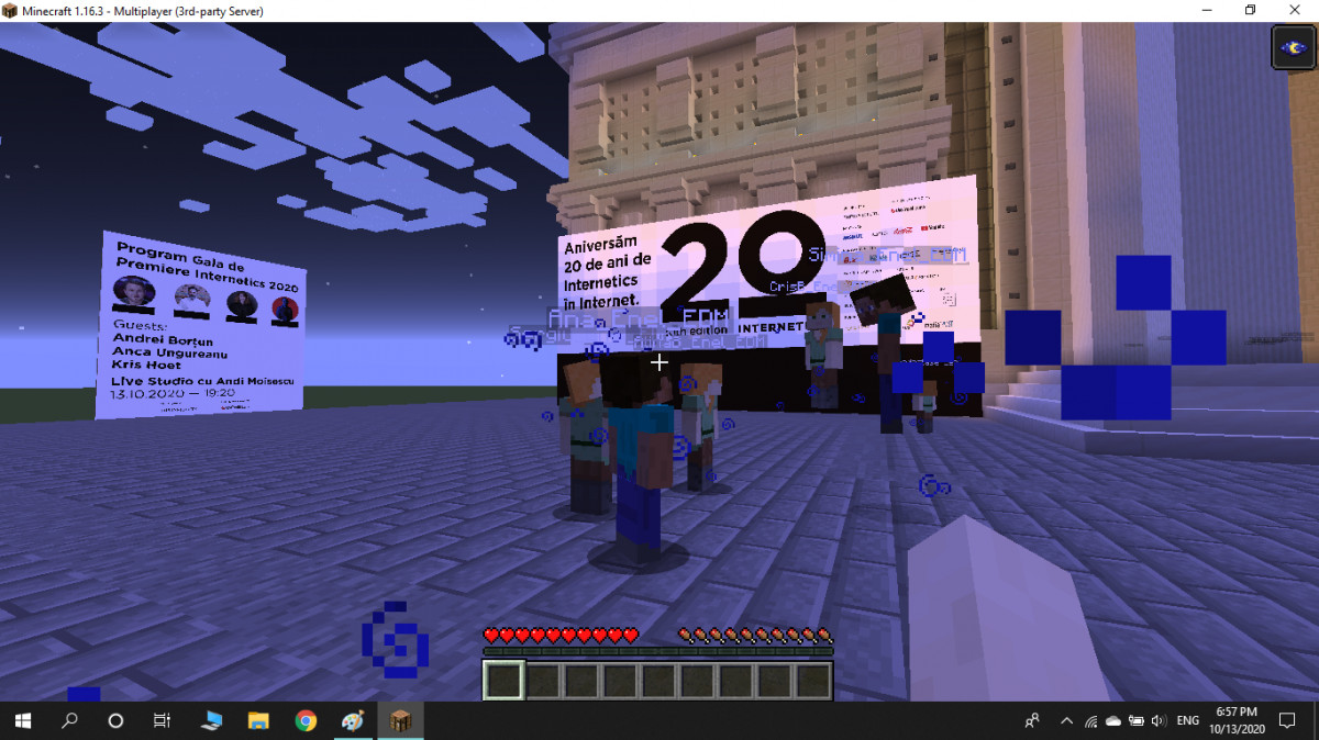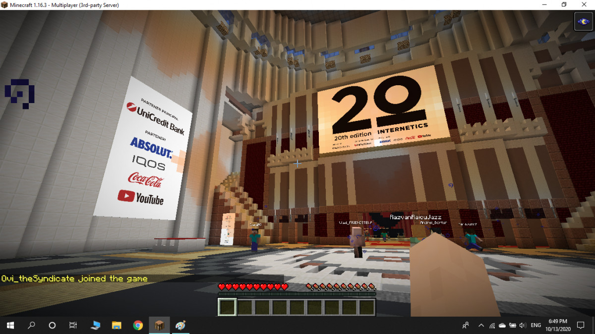 Gala de Premiere a competiției Internetics 2020, un proiect inițiat de The Institute și susținut de UniCredit Bank, s-a desfășurat exclusiv online, în jocul video Minecraft. O replică digitală a Ateneului Român, reconstruit în universul Minecraft cu suportul echipei Nexus Gaming, a reprezentat locul desfășurării evenimentului. Totodată, participanții s-au putut bucura și de un concert al trupei Vița de Vie.
