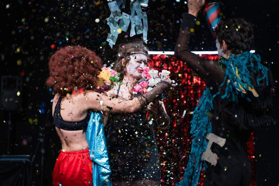 Trei personaje epuizate fac show – pe muzică live – pentru câștigarea marelui premiu: bani pentru un an sabatic.