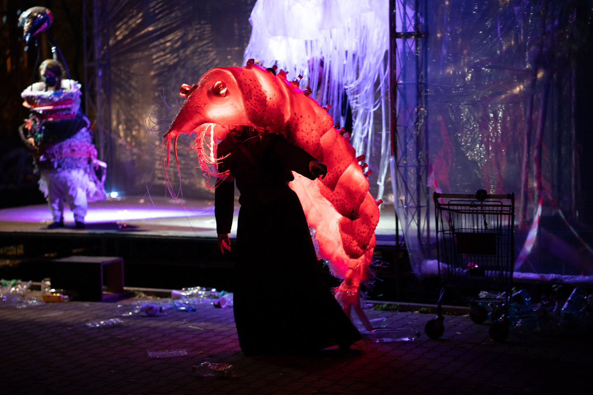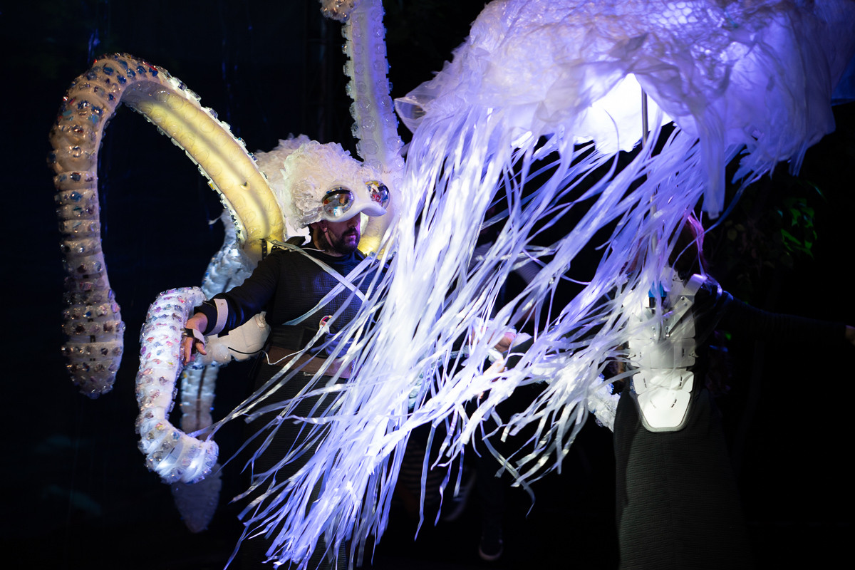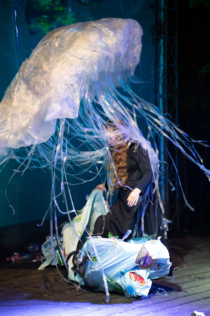 Un moment impresionant pe scena va fi cel al sopranei Veronica Anusca, ce va canta arii de opera purtand o creatie a Clarei Rotescu, o rochie cu o trena incarcata cu deseuri, un concept al Ancai Albani si Antoanetei Tica, profesori de scenografie la UNARTE.