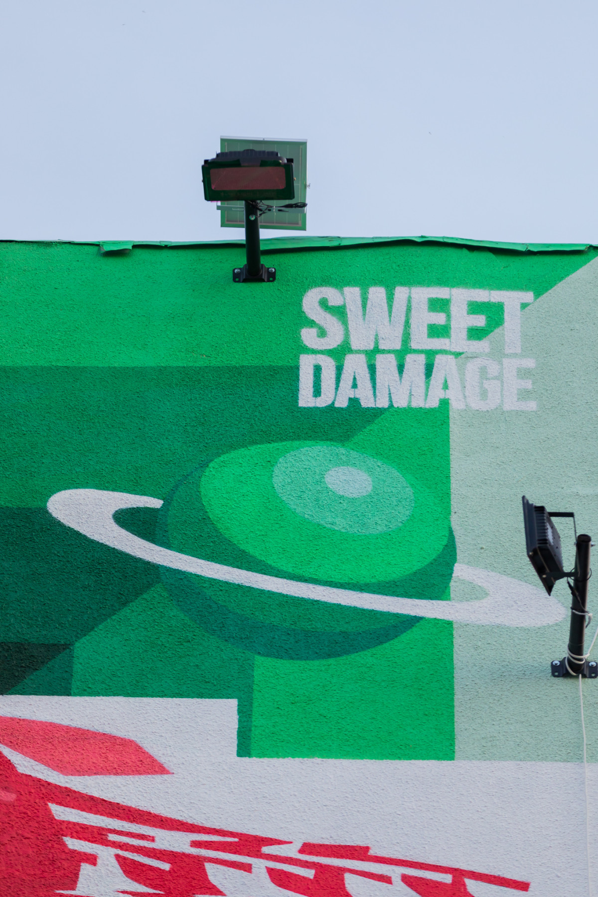 1.000 de metri pătrați de ziduri sunt transformați în opere de artă de Sweet Damage Crew, în cadrul campaniei ”Eco Graffiti / Rebels with a Cause”, susținută de glo. Artiștii vor realiza aceste opere de artă urbane utilizând exclusiv materiale eco: 25% vopsea care purifică aerul, 75% vopsea ecologică, mușchi verde și lămpi cu încărcare solară. Fiecare pictură murală va avea capacitatea de purificare a circa 4 copaci maturi, cu frunziș des.