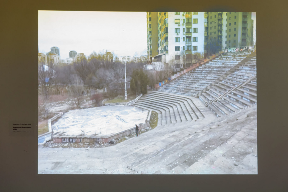Claudiu Cobilanschi își locuiește istoria orală a orașului socialist unde s-a născut și format, dezlipește ecourile amfiteatrului deschis către miază-noapte, își închipuie vocile actorilor în plin soare și citește, ca pentru sine, etichetele resturilor din noua groapă de gunoi în care s-a transformat întregul monument social. Parcurgem o întreagă stratigrafie, etichetă după etichetă, visul capitalist își împrăștie celulele moarte în parcul pionierilor, scena hexagonală pe care se desfășura un real captatio este astăzi suport de grafitti și uriașa aulă readuce, când și când, o dată cu brizele ascensionale din west, sunetele pierdute ale solidarității.