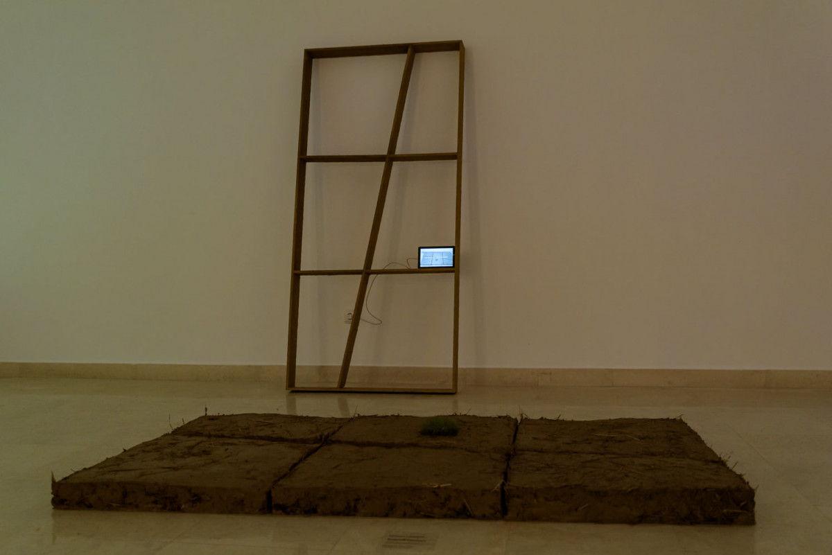 instalație eco-media performing arts, 2020-2021 pământ, iarbă, bălegar de cal, cofrag din lemn documentar video, 2 min, colaborator Alin Iacob