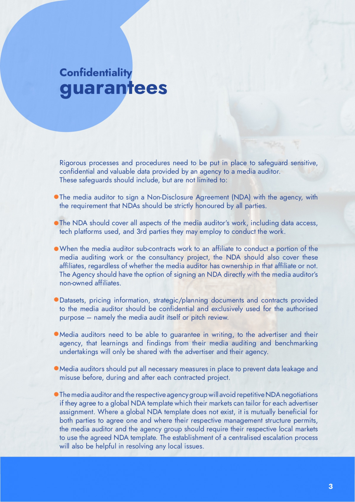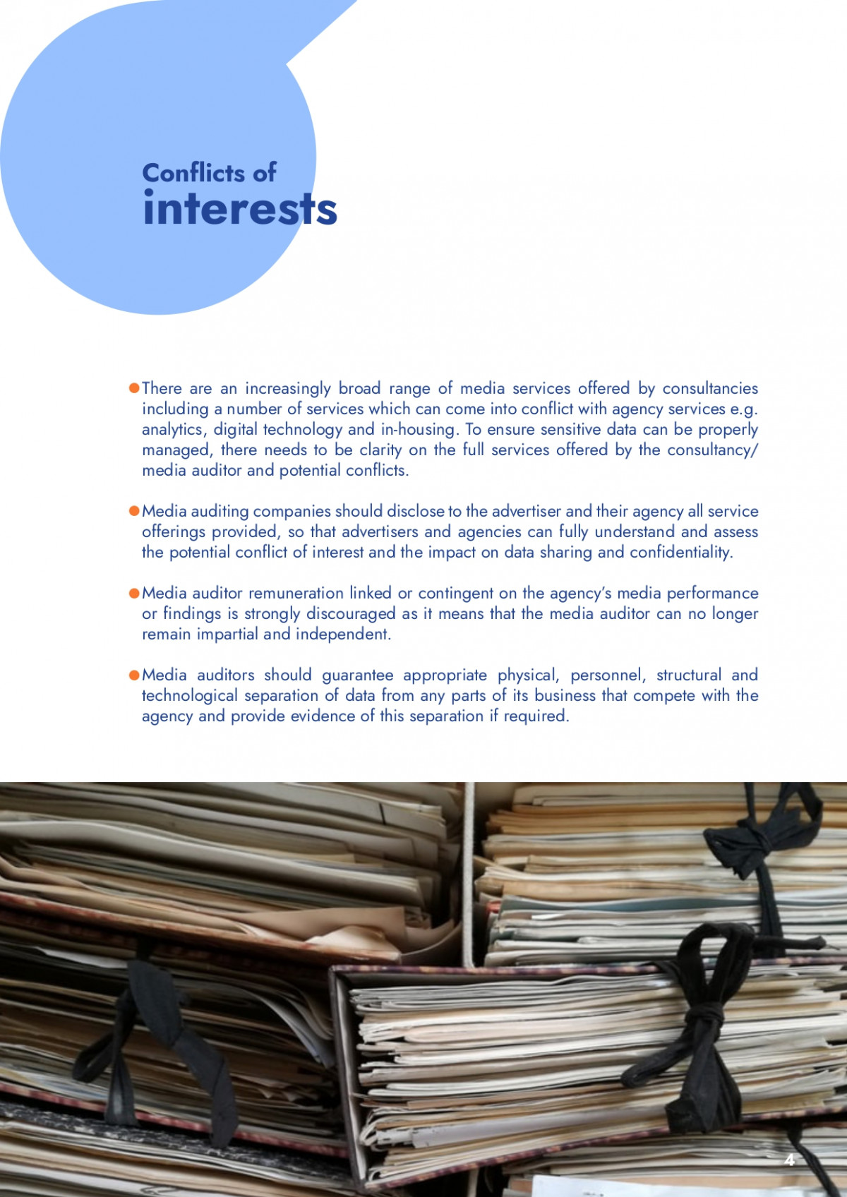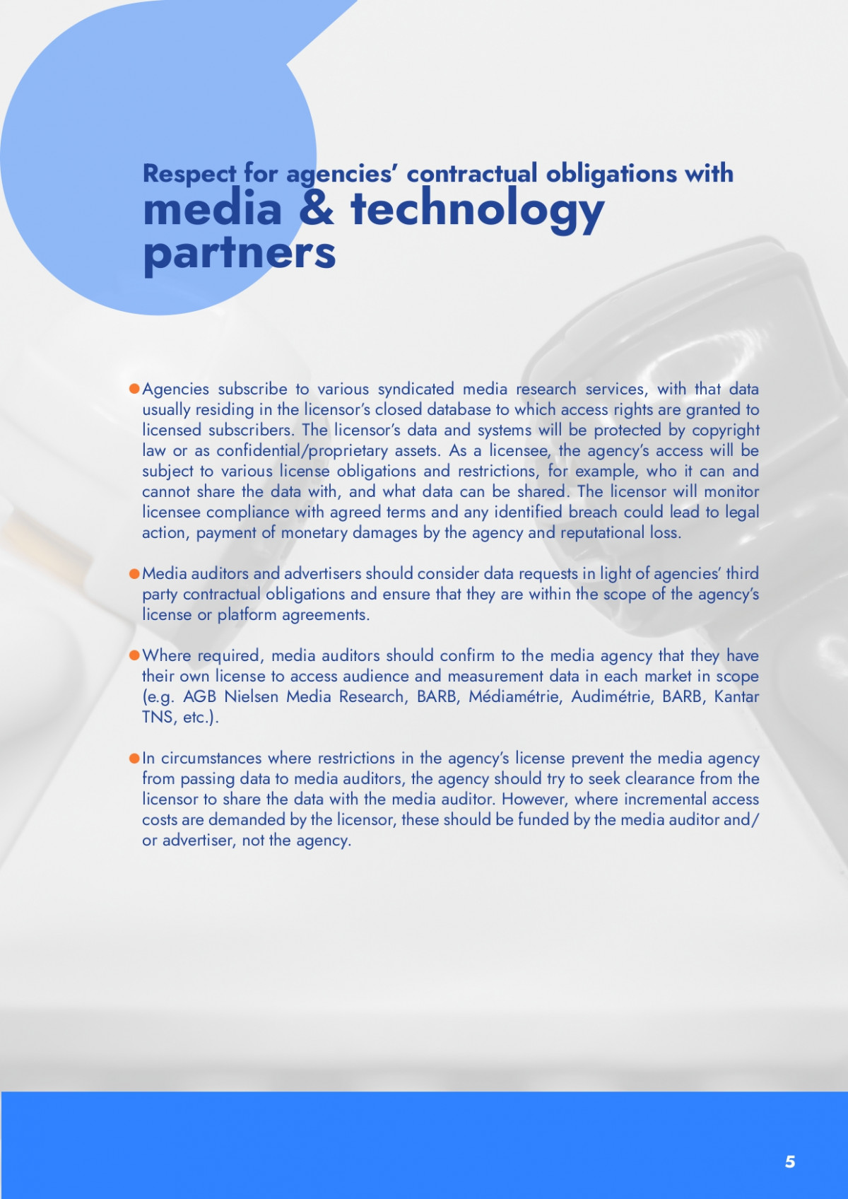 - Respect pentru obligațiile cotractuale ale agențiilor cu furnizorii de media și de tehnologie.