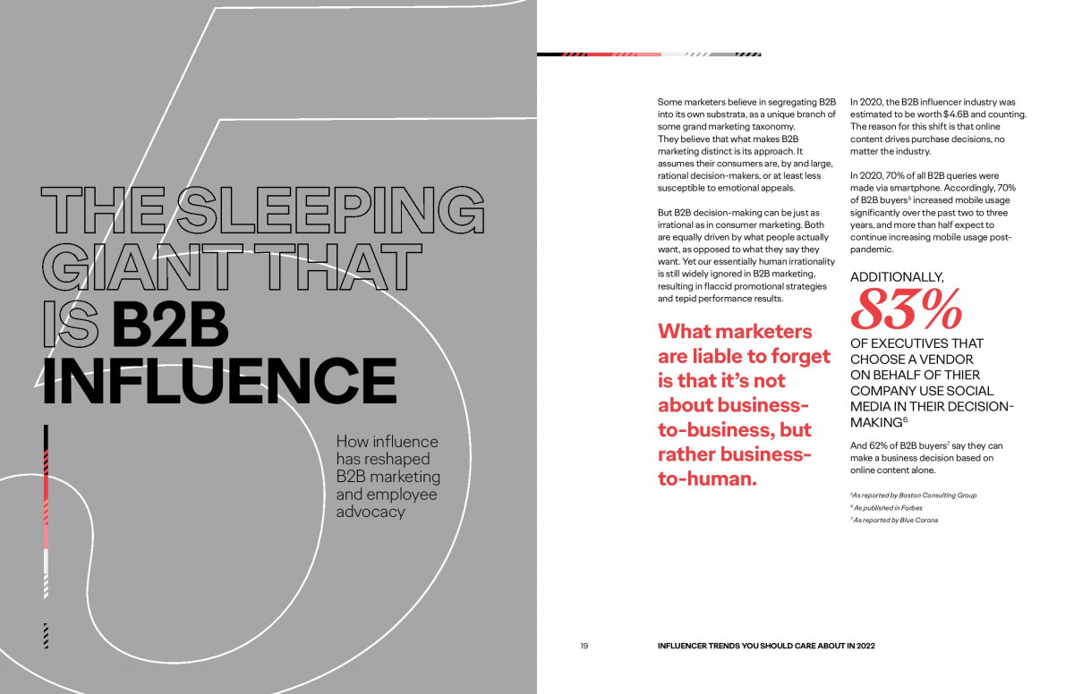 #5 B2B Influence sau Cum a remodelat Influencing-ul marketing-ul B2B – Conținutul online influențează deciziile de cumpărare ale consumatorilor indiferent de industrie, iar în 2020, industria de influencer marketing B2B era estimată la 4,6 miliarde de dolari.