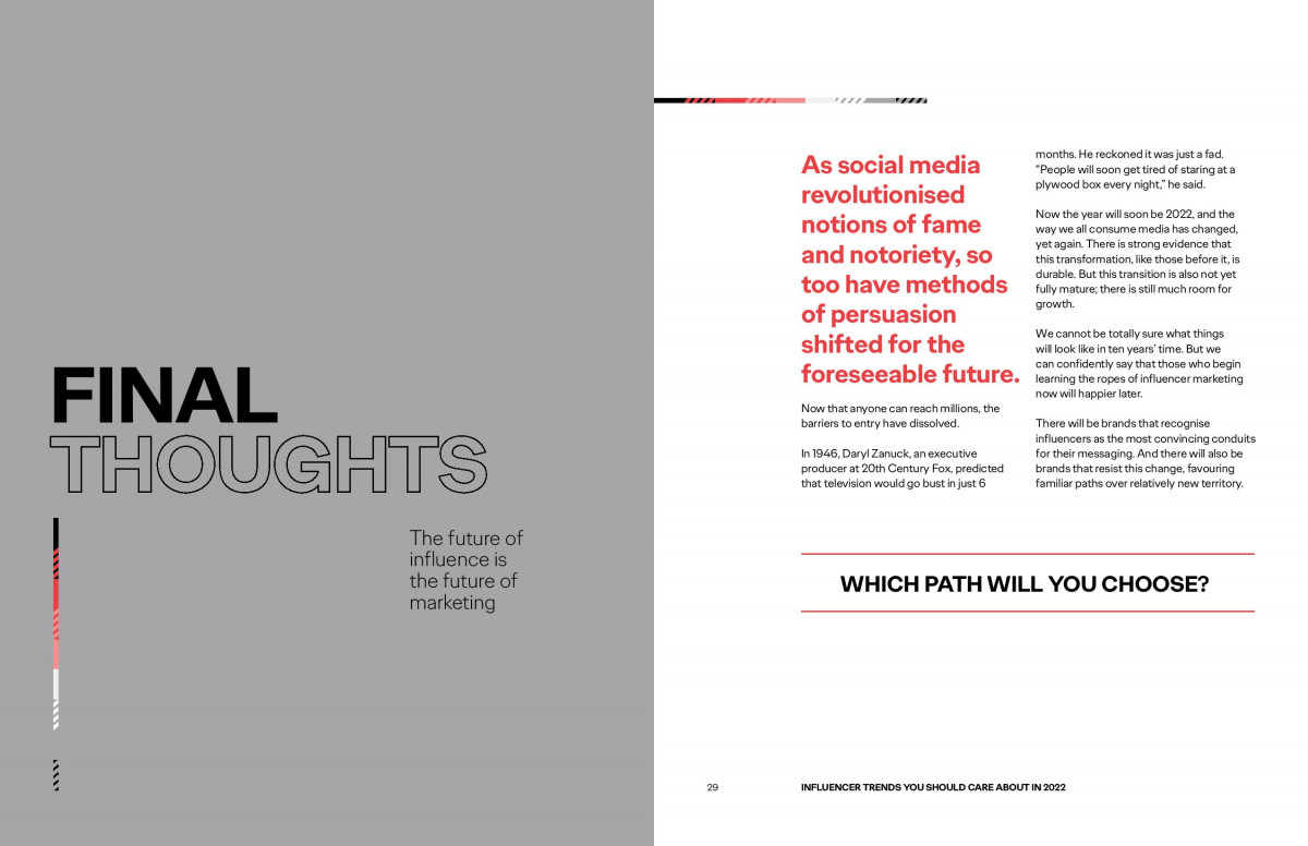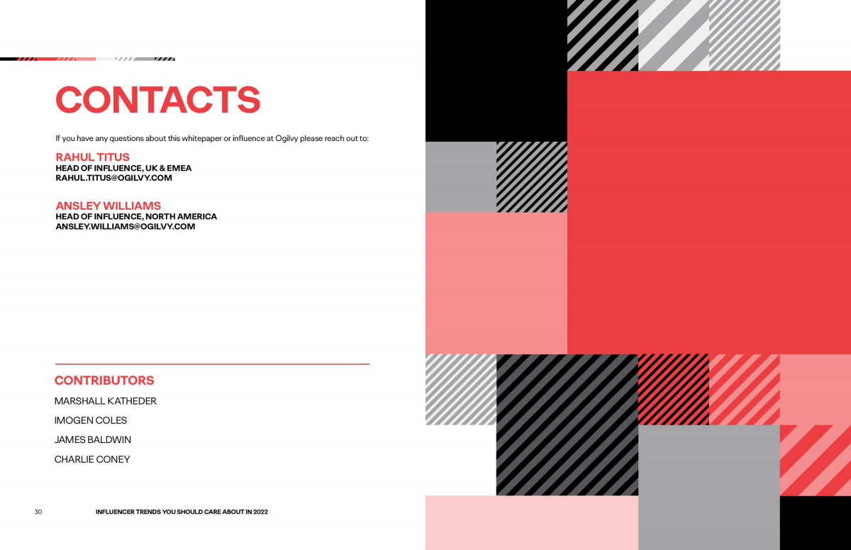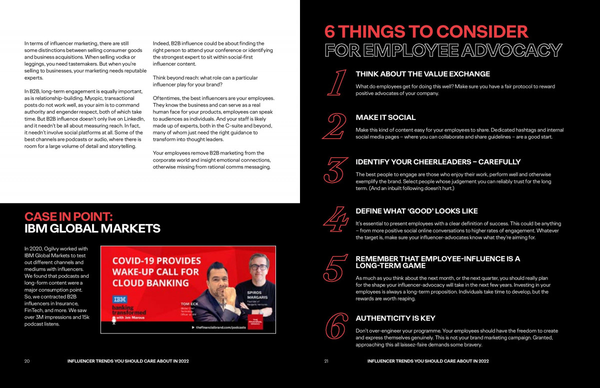 În acest context, Ogilvy vorbește despre trenduri transformatoare pentru industrie și regândirea influencing-ului, de la un simplu „add-on” în campaniile de comunicare, fără impact semnificativ, la integrarea sa în toate fazele unei campanii, în mod unitar. Briefurile pentru influenceri trebuie să fie aliniate cu strategia mai amplă a unei campanii, iar conținutul configurat pentru a fi măsurat foarte exact, astfel încât rentabilitatea investiției să poate fi evaluată în raport cu rezultatele reale de business.