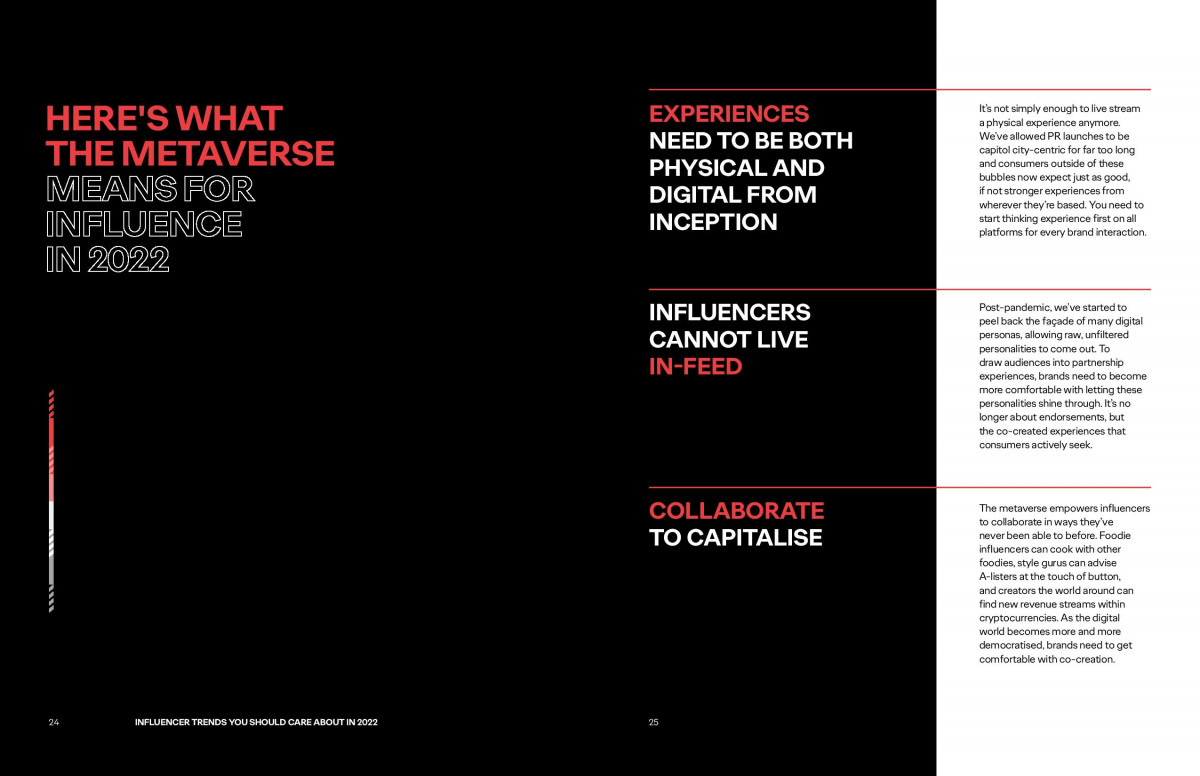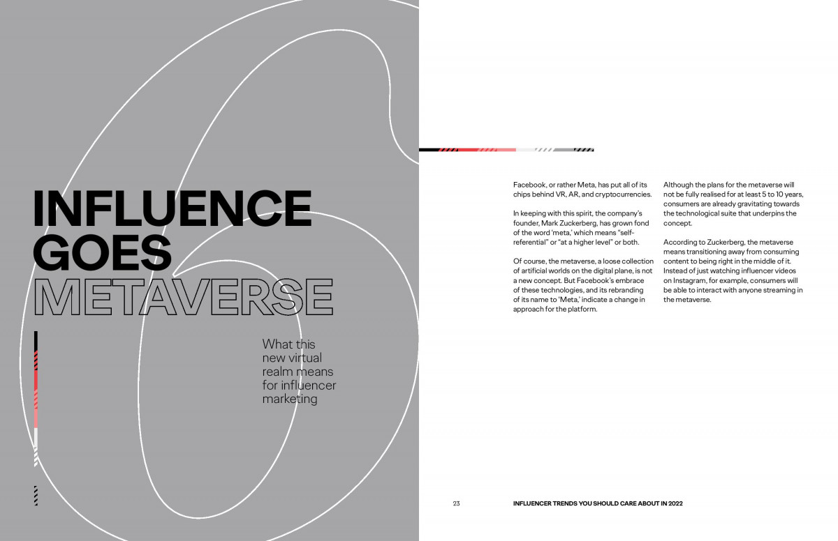 #6 Influence goes metaverse sau cum influențează acest nou tărâm virtual industria de influencer marketing. Nu mai este suficient să transmitem în social media un eveniment care are loc fizic, experiențele trebuie gândite încă de la început în mediul digital. Metaversul le oferă influencerilor oportunitatea de a colabora în moduri care nu erau posibile până acum, pentru co-crearea unor experiențe pe care consumatorii le caută în mod activ.