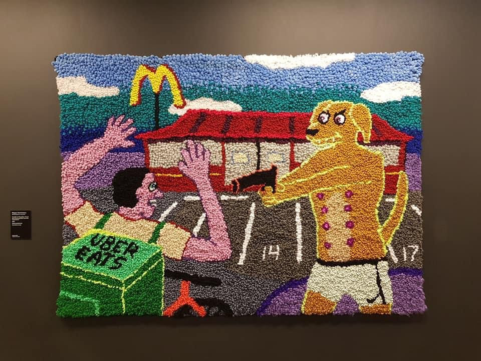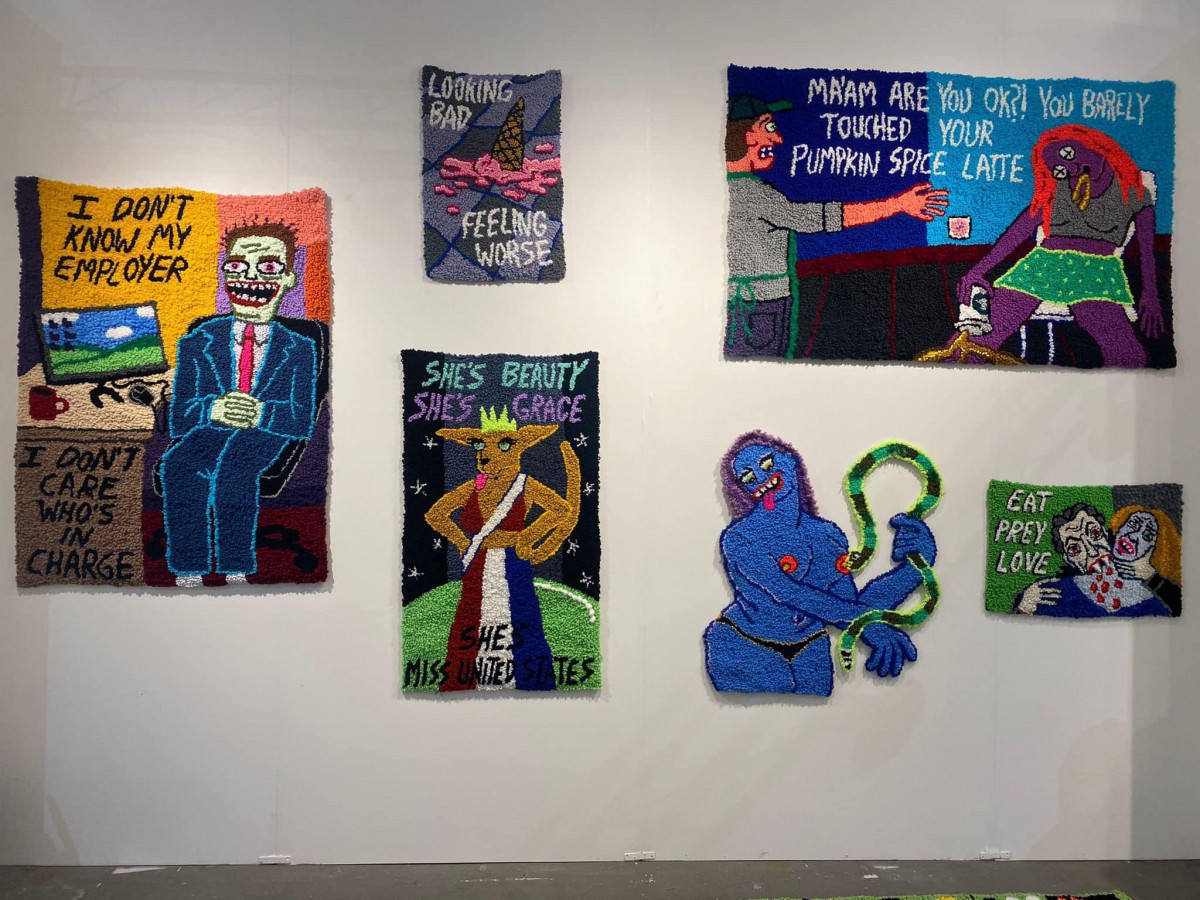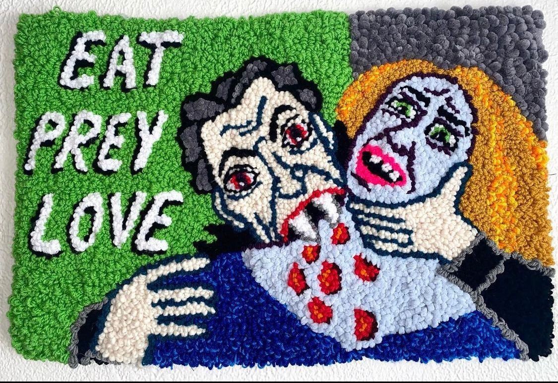 Aș spune că am în spate un context destul de divers. De-a lungul timpului am explorat tot felul de tehnici artistice, doar că nu reușeam niciodată să simt că ce făceam era potrivit pentru mine - asta până când am dat de arta textilă. Deși desenam și pictam de foarte mult timp, mereu am simțit o chemare înapoi către textile. Am început cu tricotatul, croșetatul și cusutul de pe la 6 ani, învățând de la mama și bunica mea, și întotdeauna mi-a plăcut enorm. Îmi fac haine singură de când mă știu. Puțin mai târziu, am început să-mi tricotez propriile păpuși, pe care mai apoi le vindeam la târguri sau pe net. După m-am băgat pe pictură și am terminat facultatea tot în domeniul ăsta. Cu toate astea, aproape imediat după ce mi-am luat licența, mi-am dat seama că adevărata mea iubire era arta textilă. Nu că aș fi împotriva altor tehnici, dar pur și simplu n-am simțit nevoia să merg spre altceva de mulți ani. E ceva legat de texturile și aspectul de sculptură al lucrărilor mele de acum, ceva care creează un contrast aproape comic între subiectul lucrării și tehnica folosită. Momentan îmi vine mult mai ușor să mă exprim prin covoarele pe care le fac, decât prin alte forme artistice.