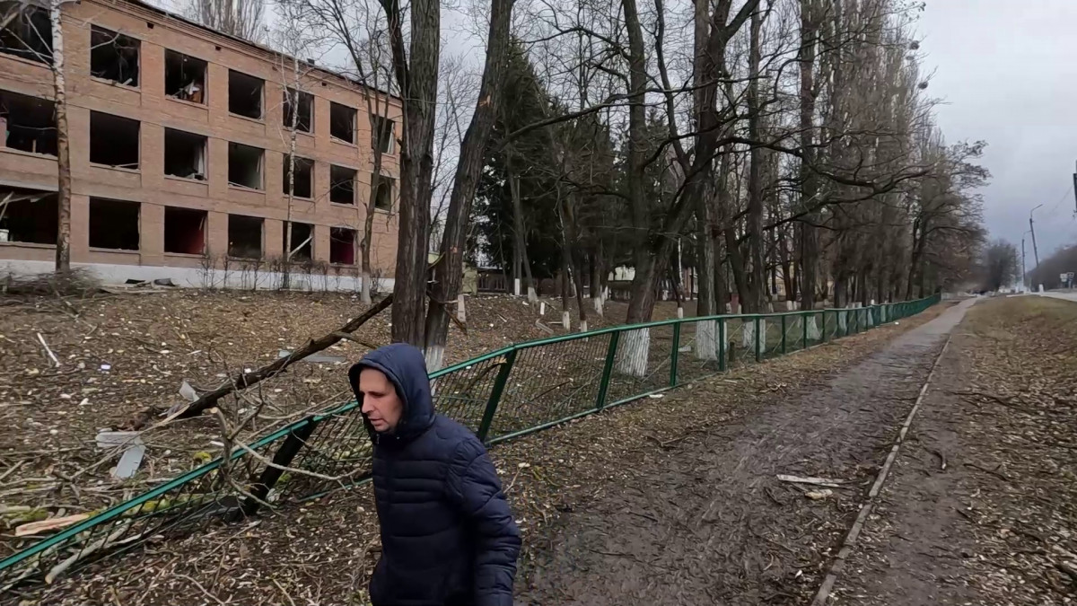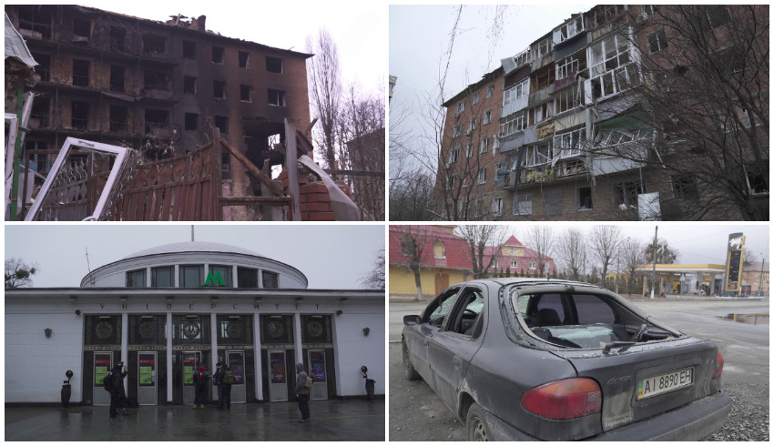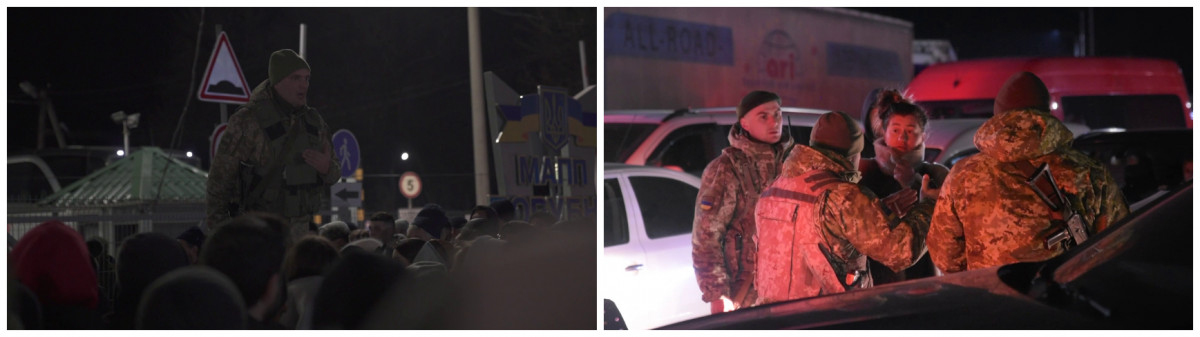 Apoi, am gasit un personaj pe care ne-am dat seama ca ar fi bine sa-l urmarim pana la Kiev. E vorba de un ucrainean care si-a adus familia in Bucuresti si s-a intors cu echipament de protectie – casti, veste antiglont - pentru prietenii lui care ajuta armata ucraineana in rezistenta de la Kiev.