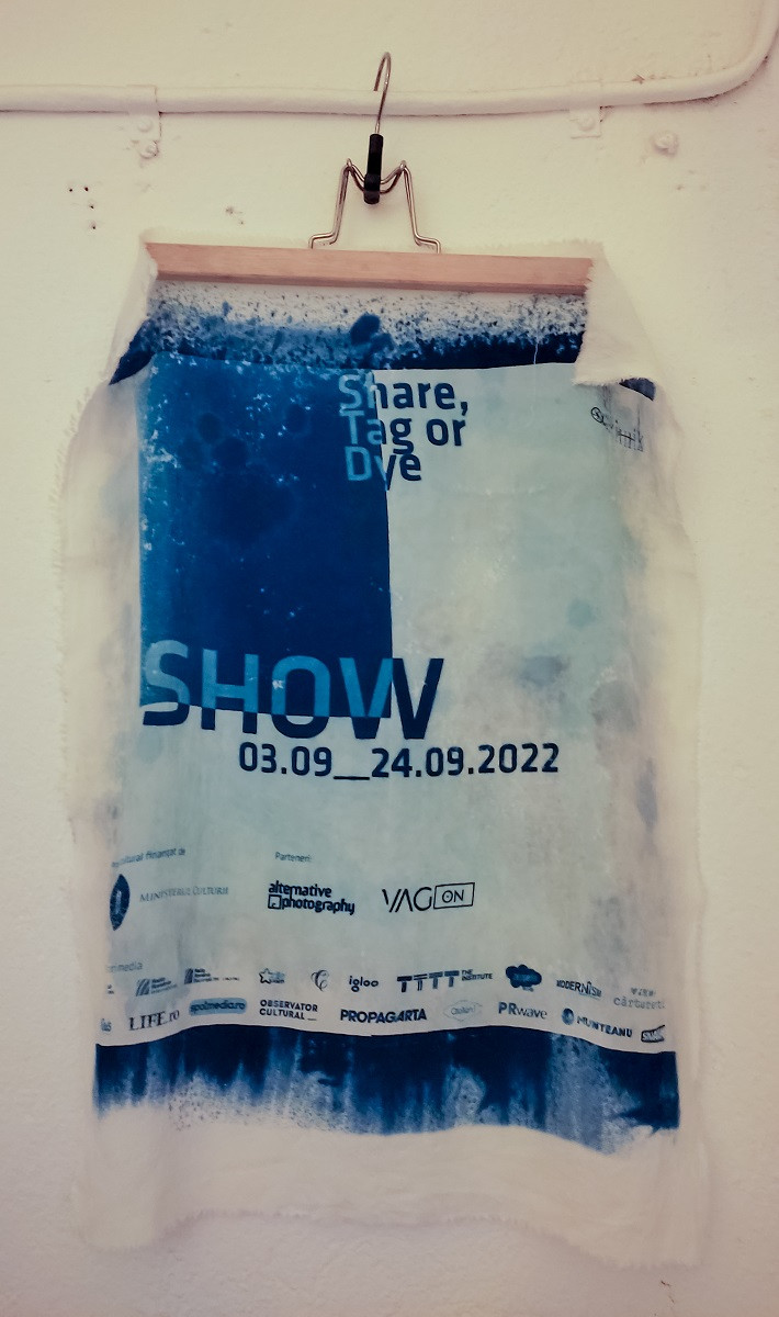 Instalația Share, Tag or Dye, parte a proiectului omonim derulat de Asociația Fotografică Allkimik, va mai putea fi vizitată până pe 2 octombrie, la VAGon - spațiu in(ter)disciplinat, din cadrul Atelierelor Malmaison (Calea Plevnei nr. 137C, etaj 2, aripa stângă, București), în cadrul Nopții Albe a Galeriilor, cu un program special vineri, sâmbătă și duminică, între orele 19:00 și 24:00.