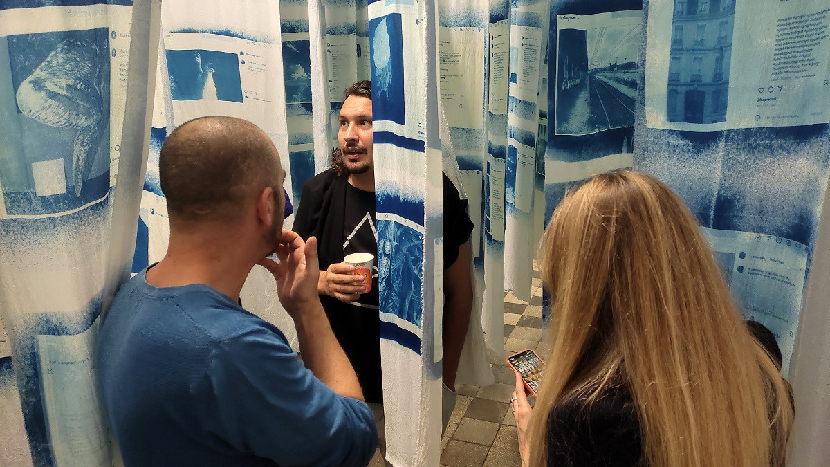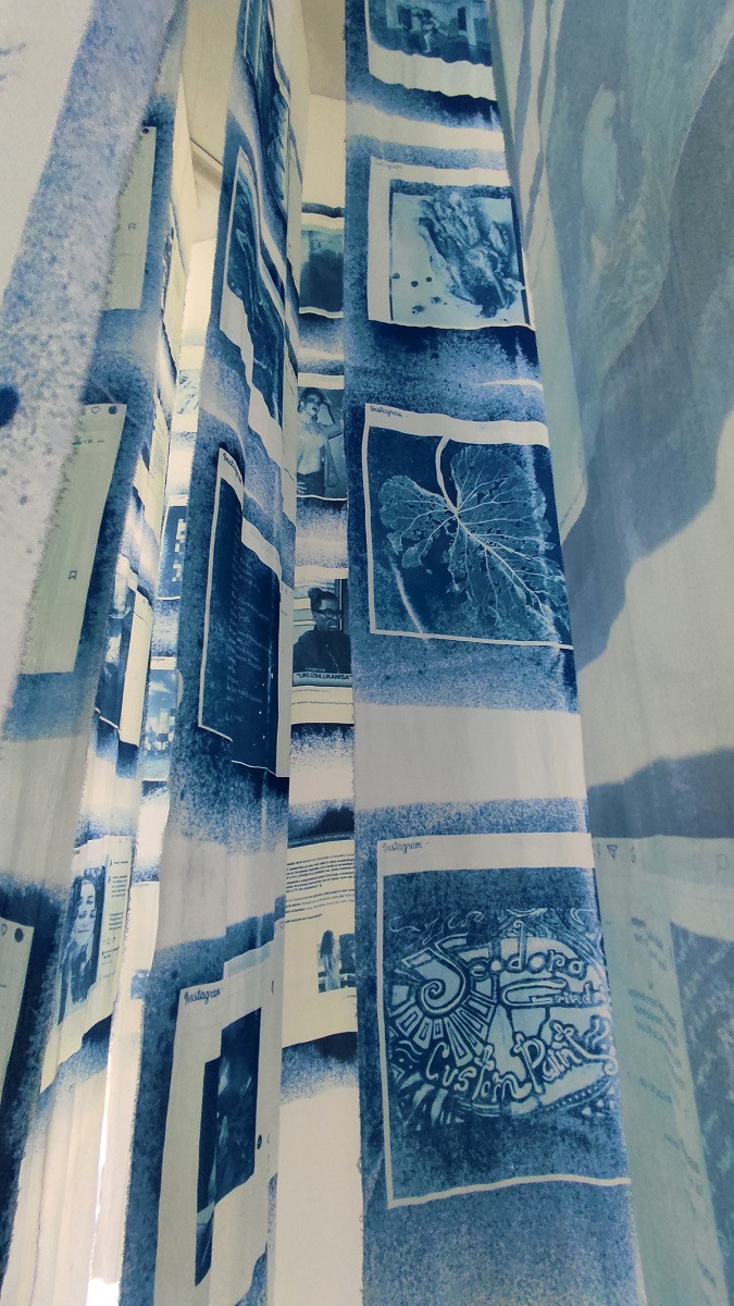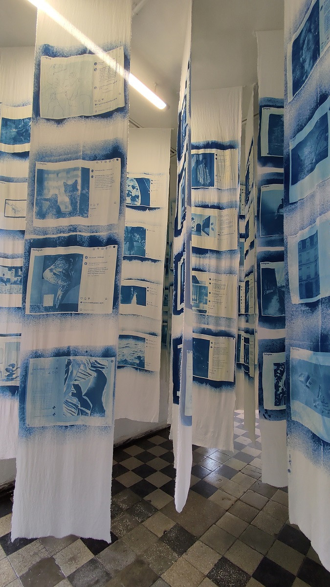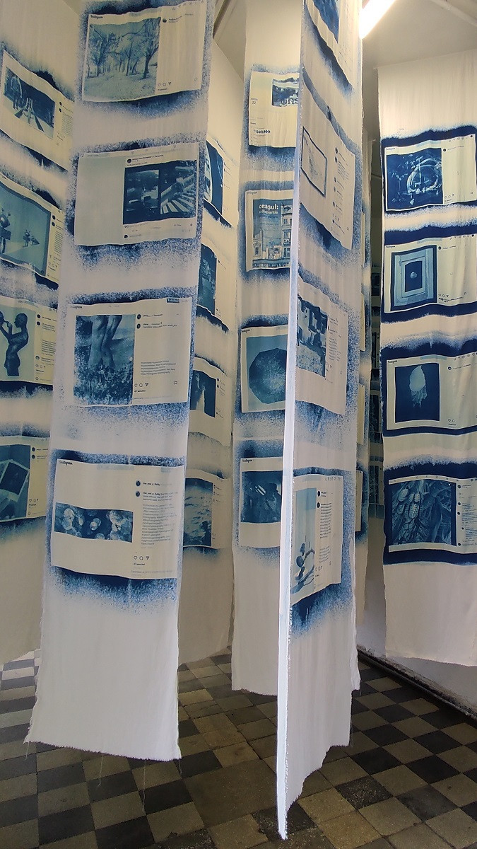 Instalația înrădăcinată în mediul online a fost adusă în plan material, prin intermediul unei tehnici fotografice cu aproape 200 de ani de istorie (cianotipia este una dintre primele tehnici stabile ale fotografiei, bazată de săruri feroase și expunere la soare), astfel încât vizitatorii să poată avea experiența unei rețele sociale transpuse în spațiul fizic.