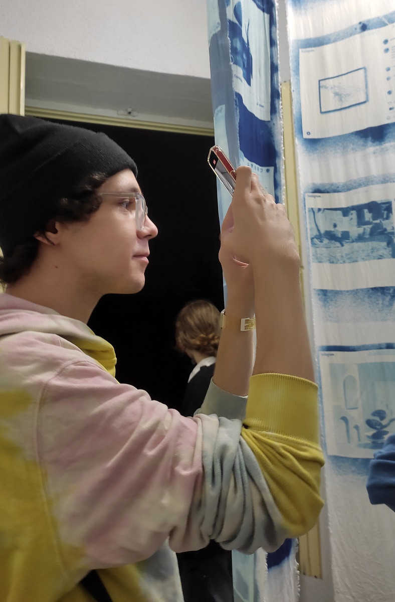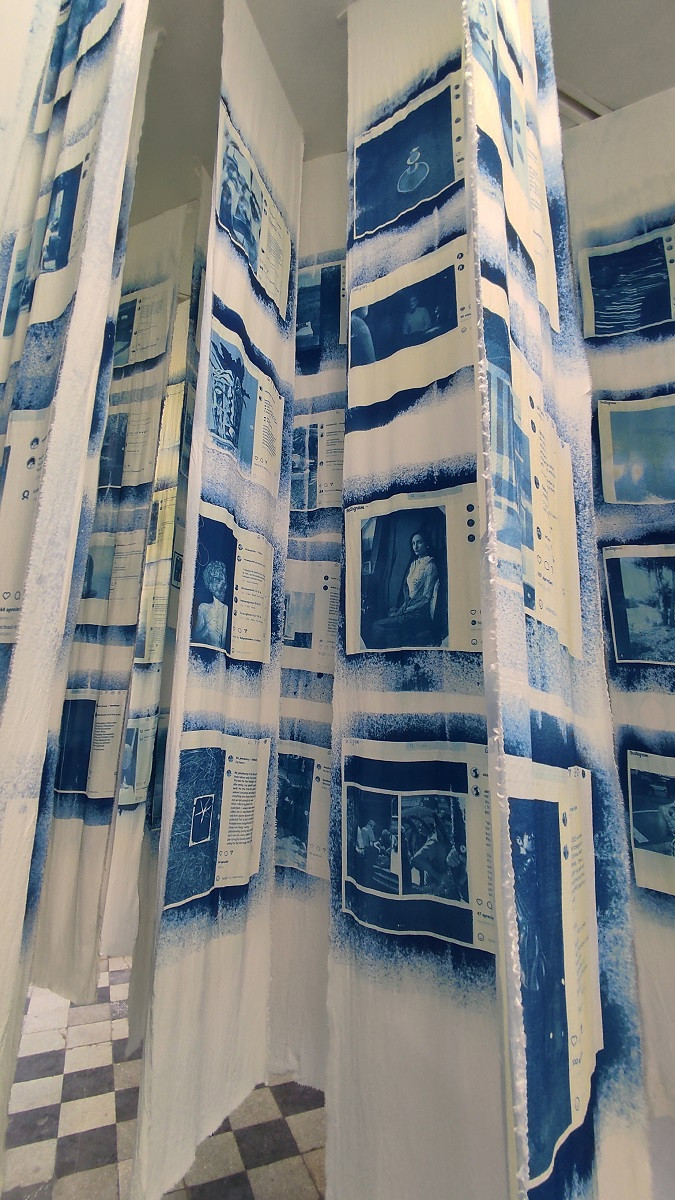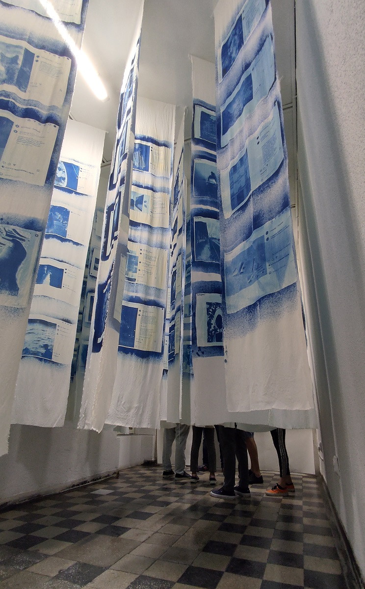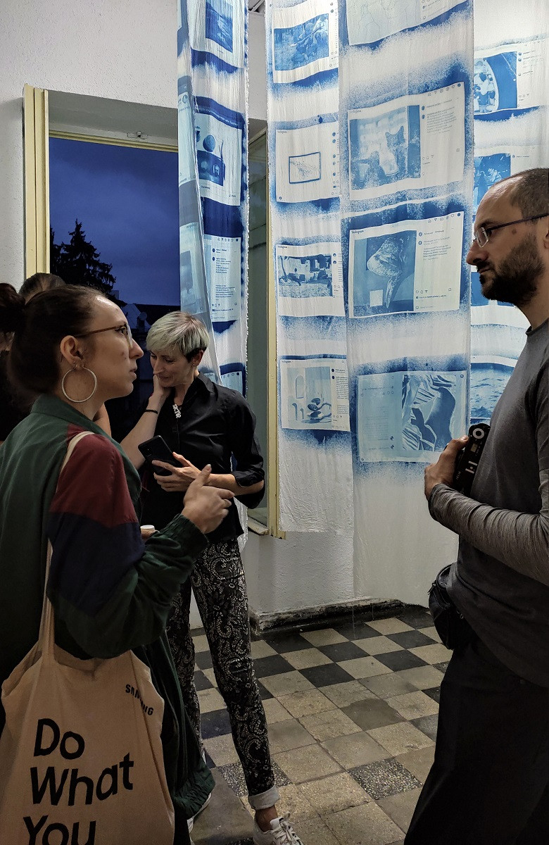 Instalația înrădăcinată în mediul online a fost adusă în plan material, prin intermediul unei tehnici fotografice cu aproape 200 de ani de istorie (cianotipia este una dintre primele tehnici stabile ale fotografiei, bazată de săruri feroase și expunere la soare), astfel încât vizitatorii să poată avea experiența unei rețele sociale transpuse în spațiul fizic.