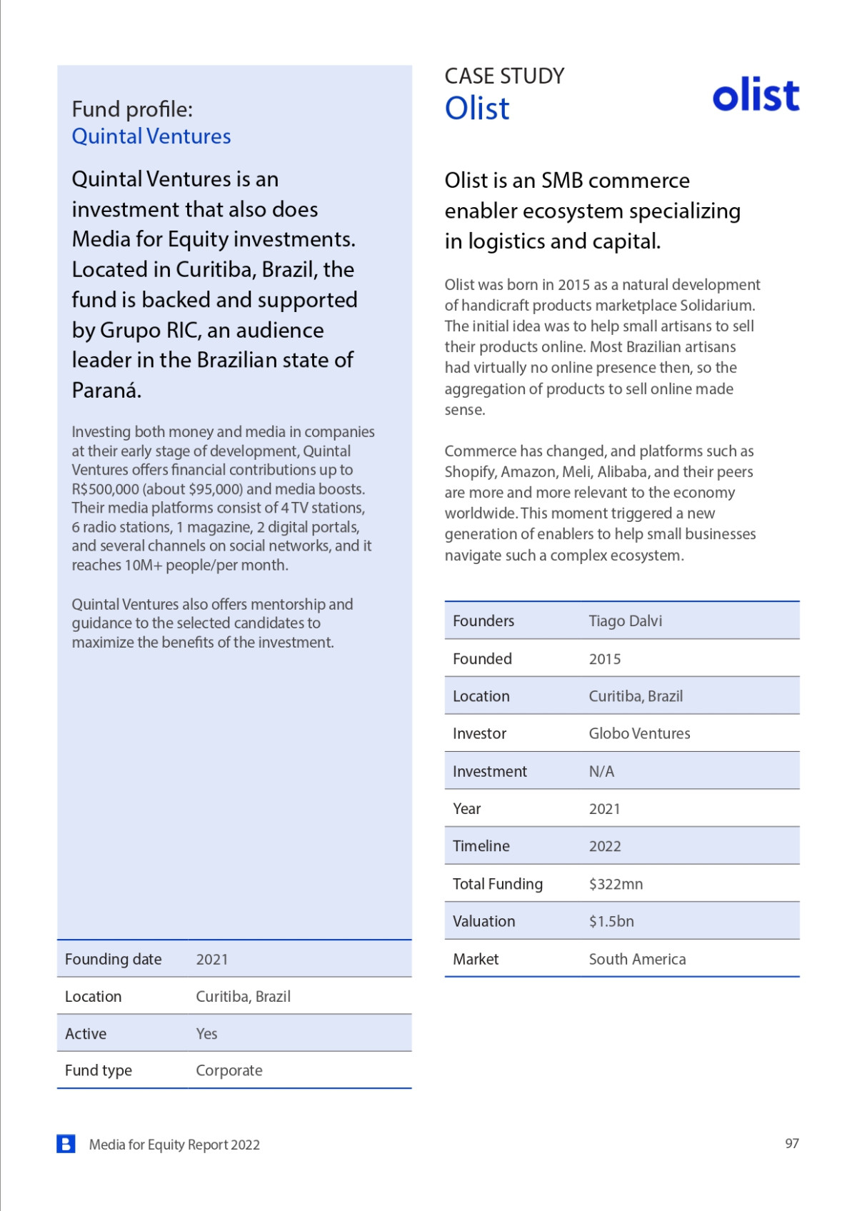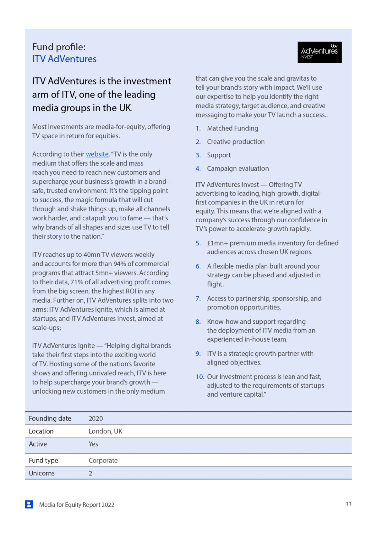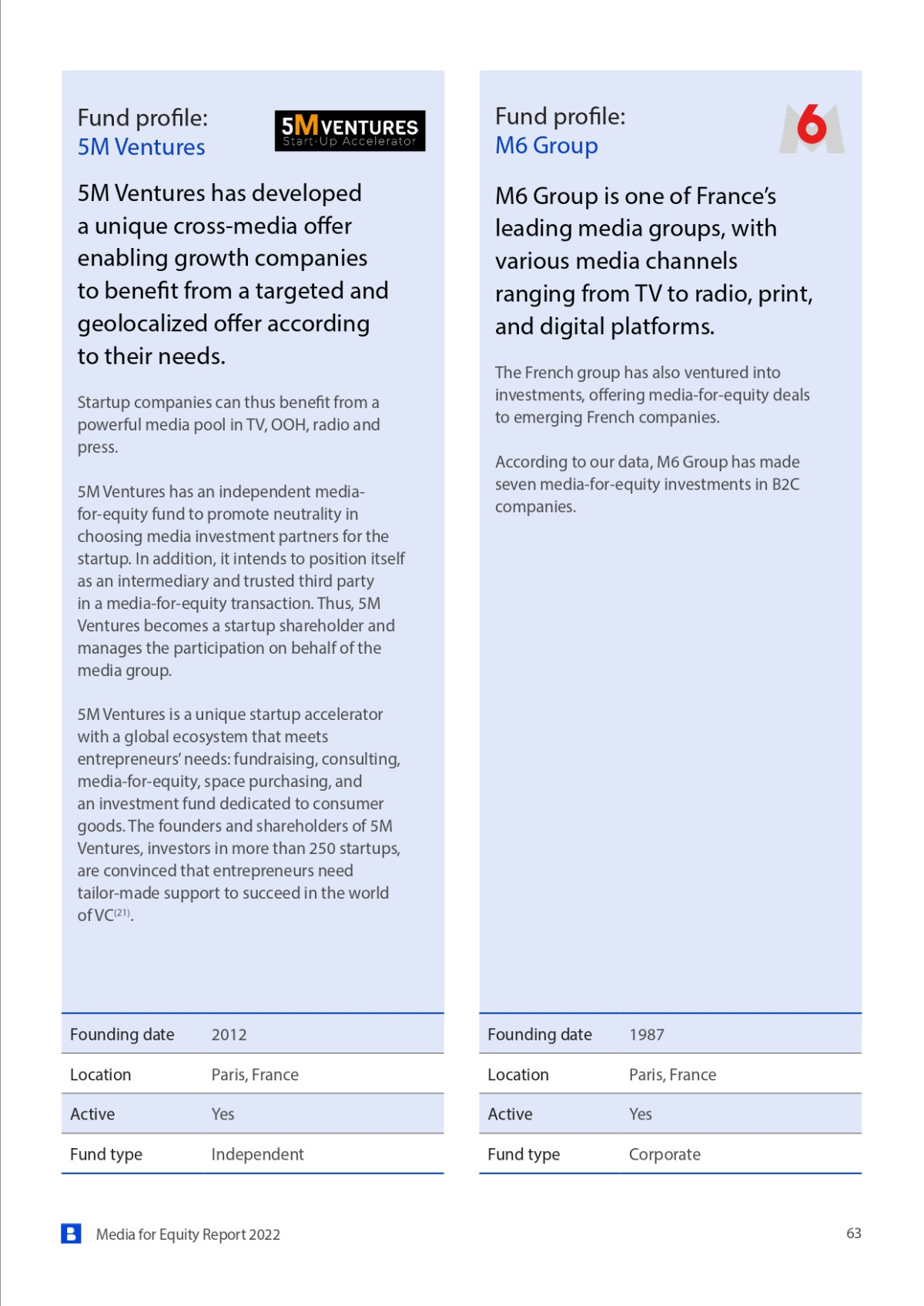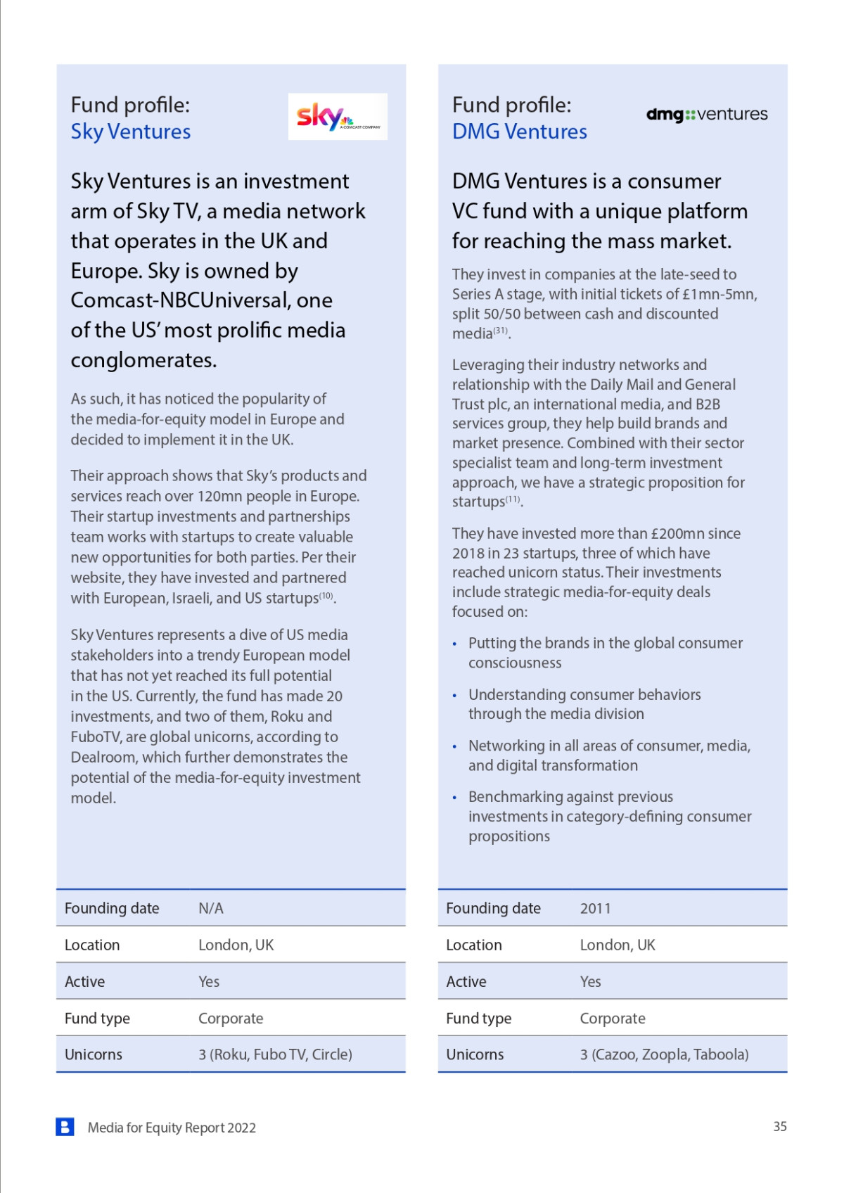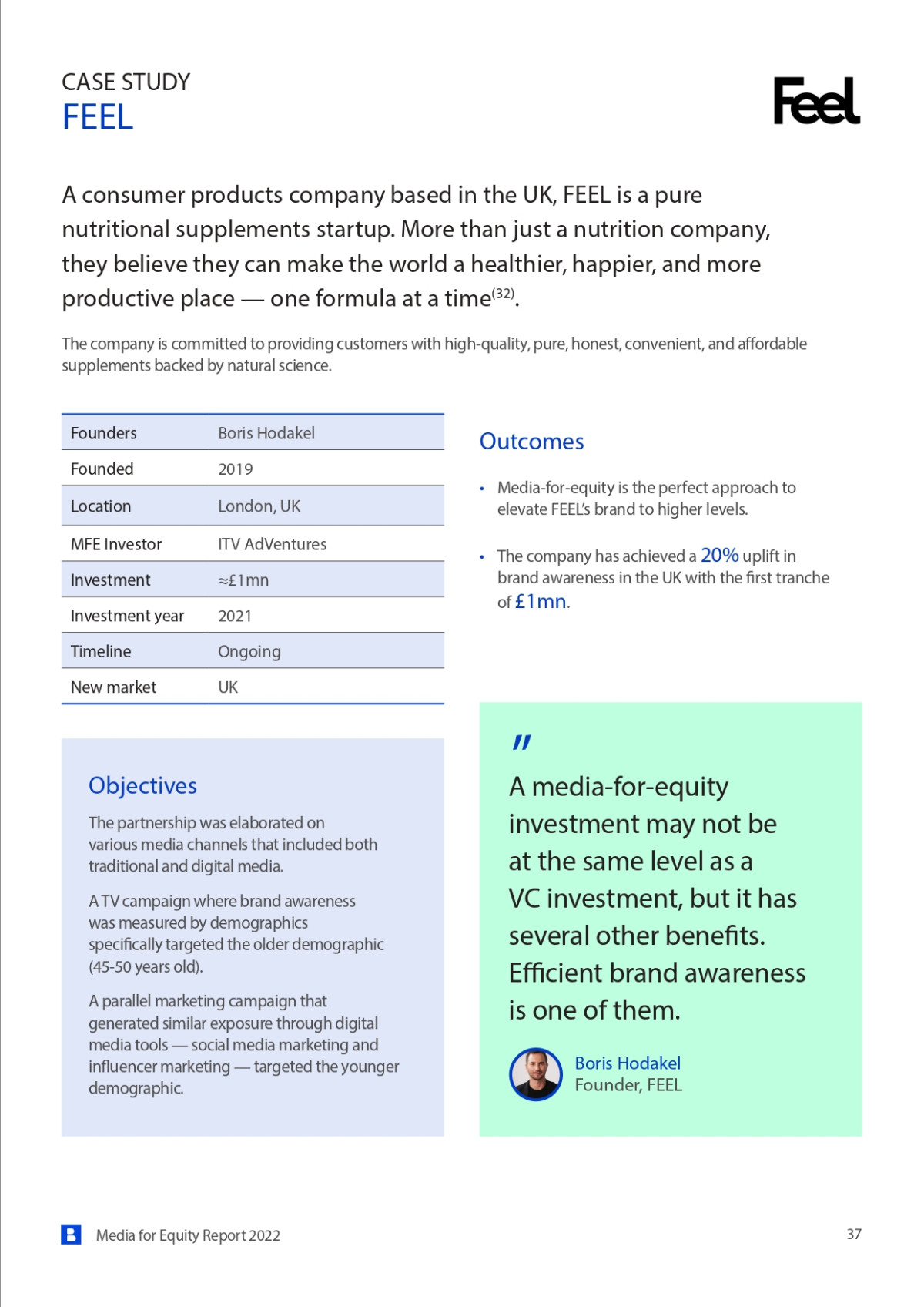 As part of our 2022 report conclusion, we anchored out some directions for media-for-equity investments for the years to come. The model will become increasingly popular, and with the evolution of the media industry, we expect to see new forms of advertising being used in exchange for equity, such as influencer marketing. Similarly, OTT platforms will give rise to media buying technologies, enabling upcoming companies to gain direct access to media buying, such as performance marketing.