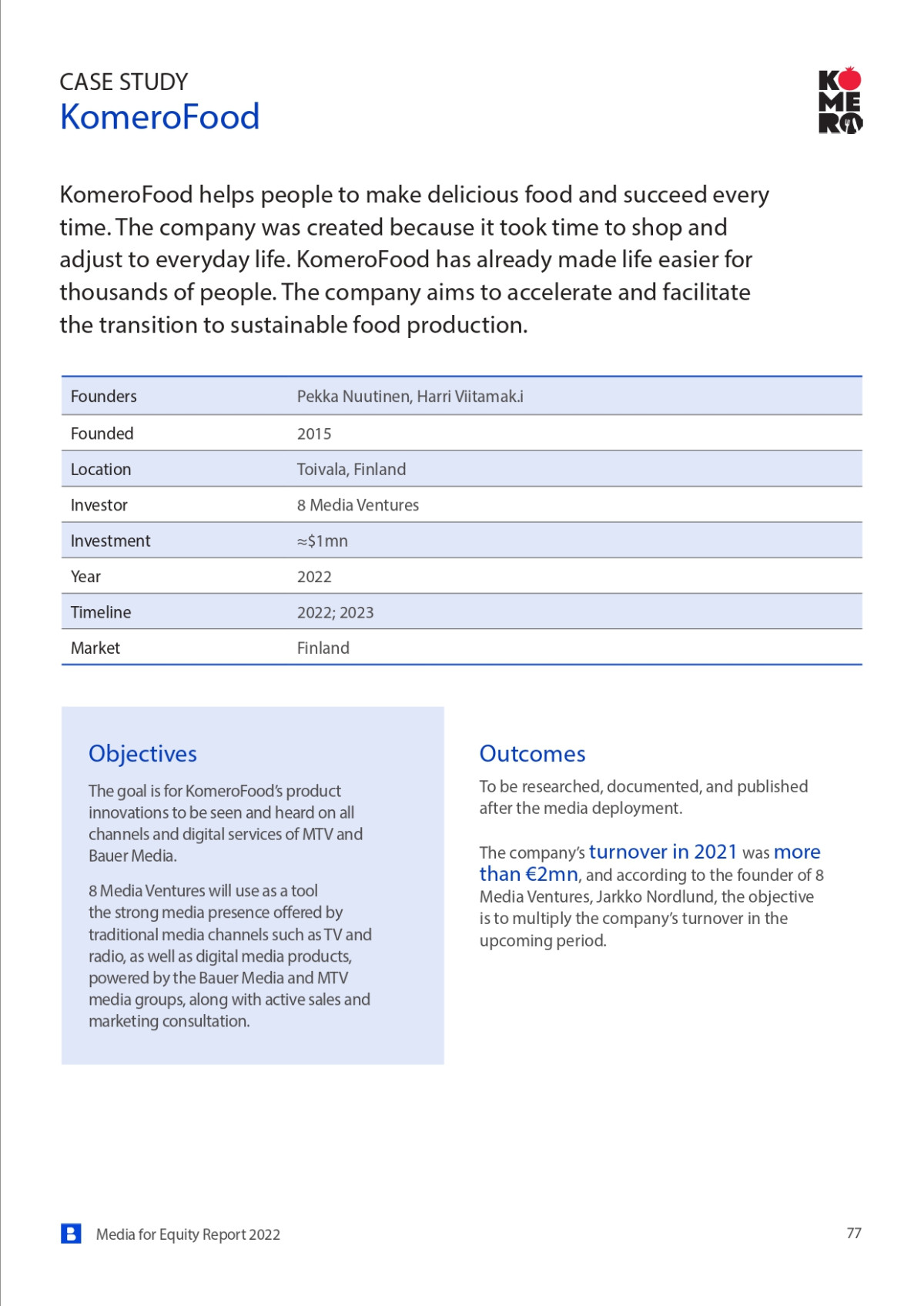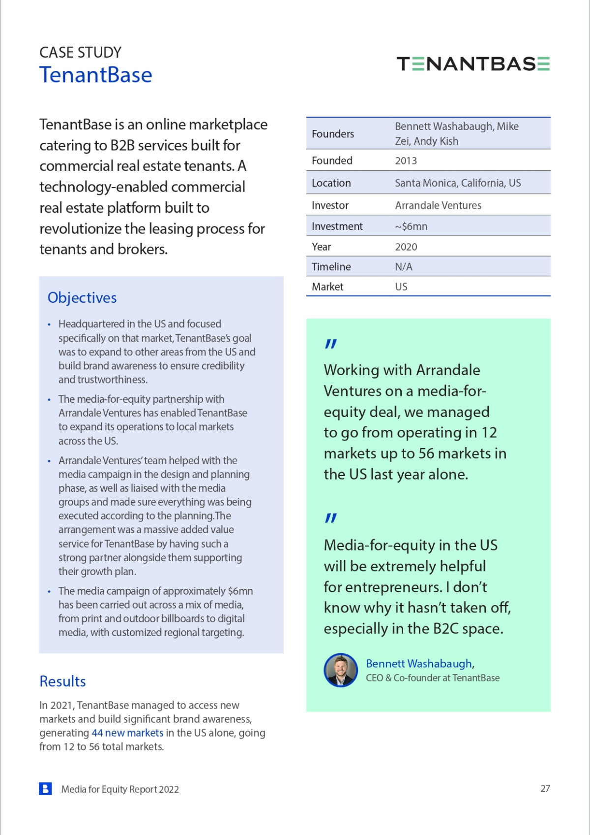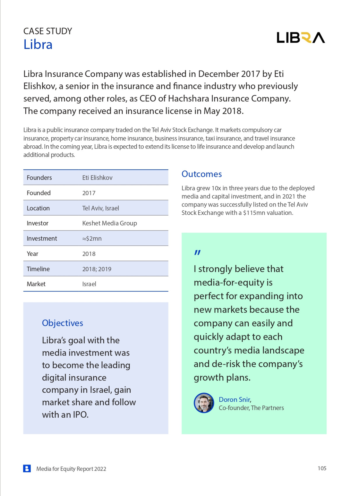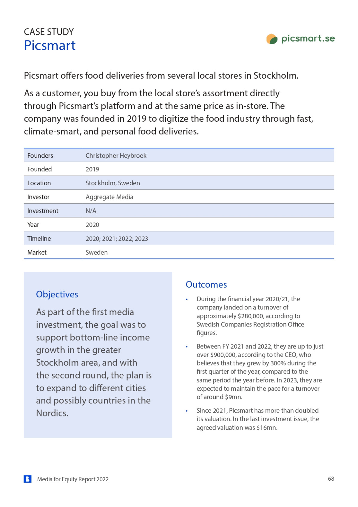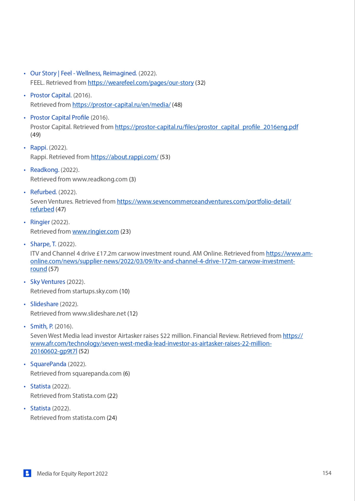 As part of our 2022 report conclusion, we anchored out some directions for media-for-equity investments for the years to come. The model will become increasingly popular, and with the evolution of the media industry, we expect to see new forms of advertising being used in exchange for equity, such as influencer marketing. Similarly, OTT platforms will give rise to media buying technologies, enabling upcoming companies to gain direct access to media buying, such as performance marketing.
