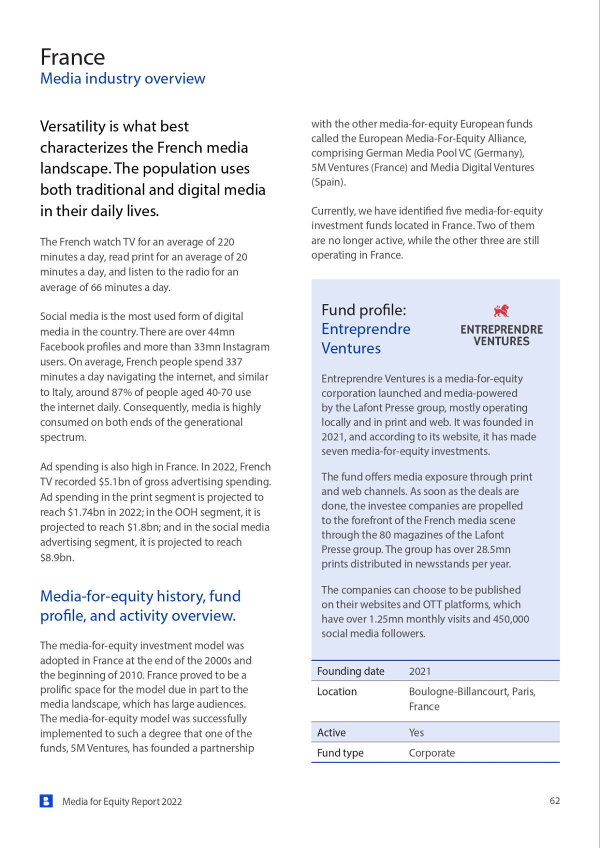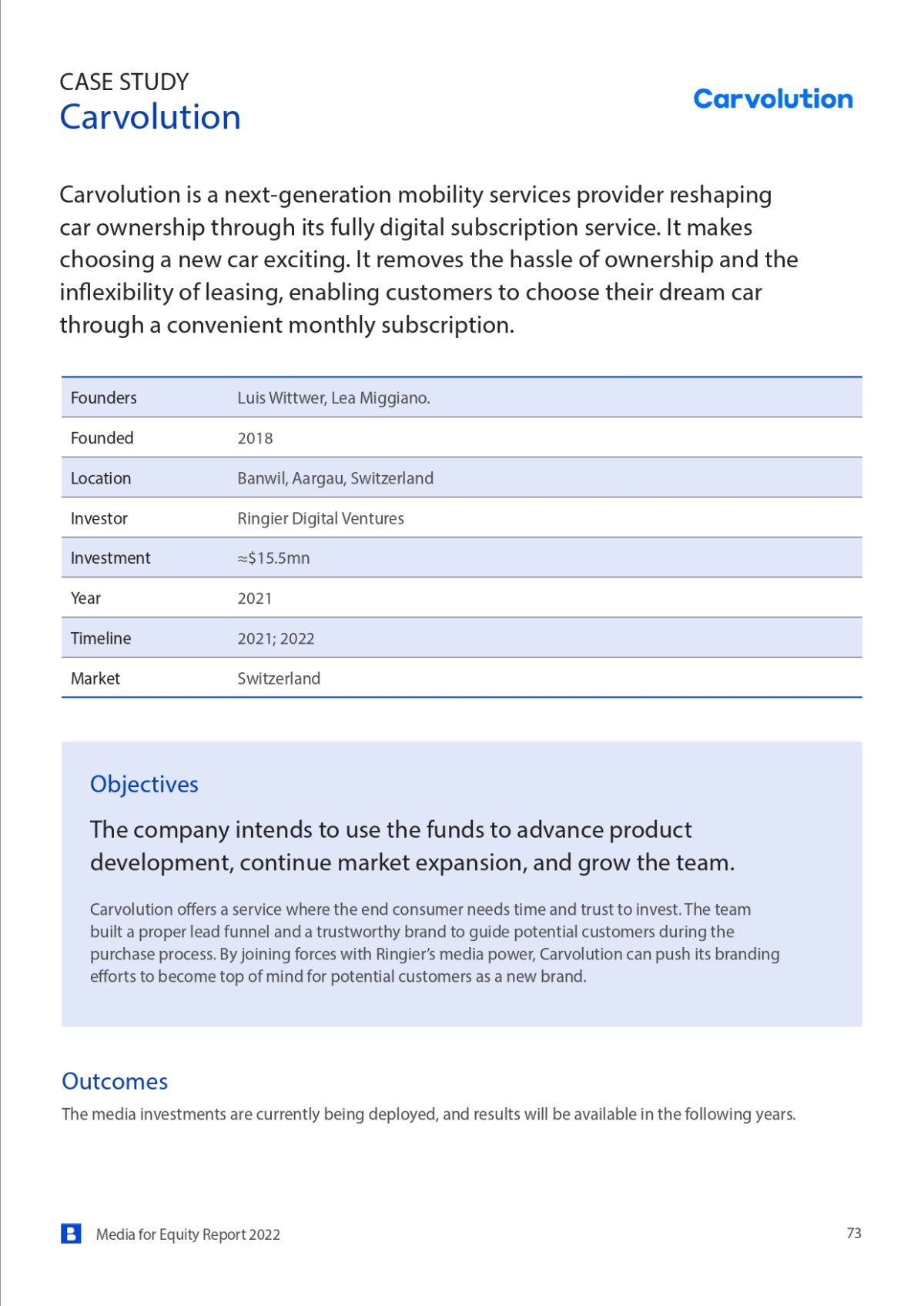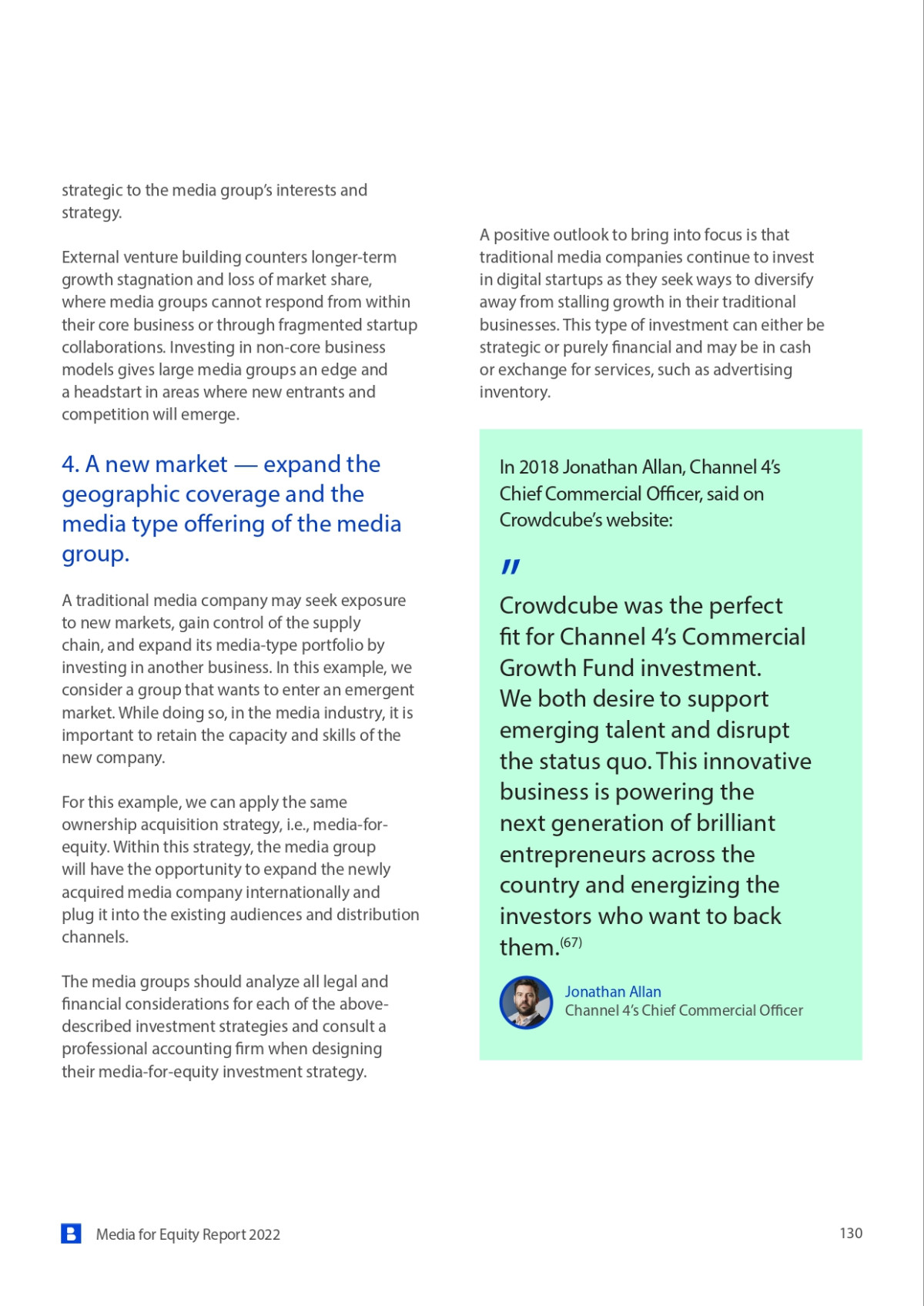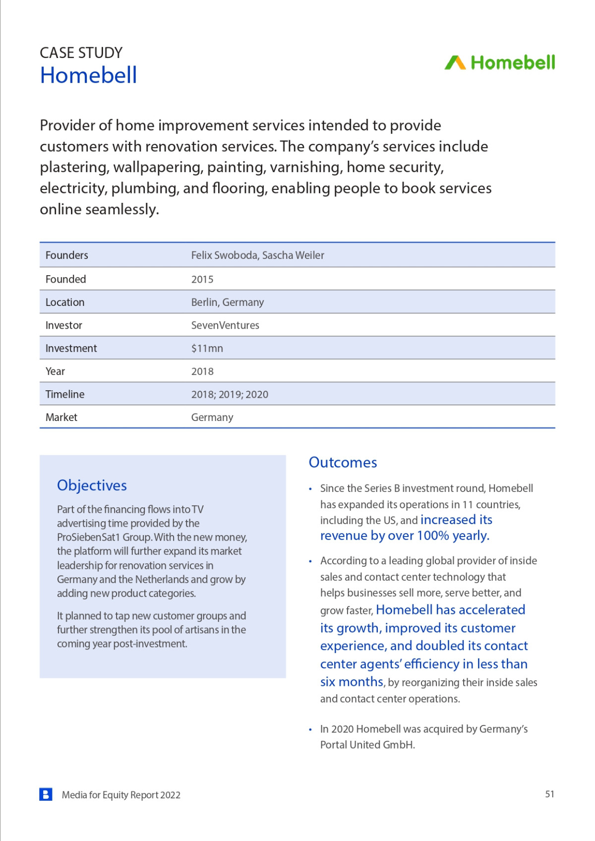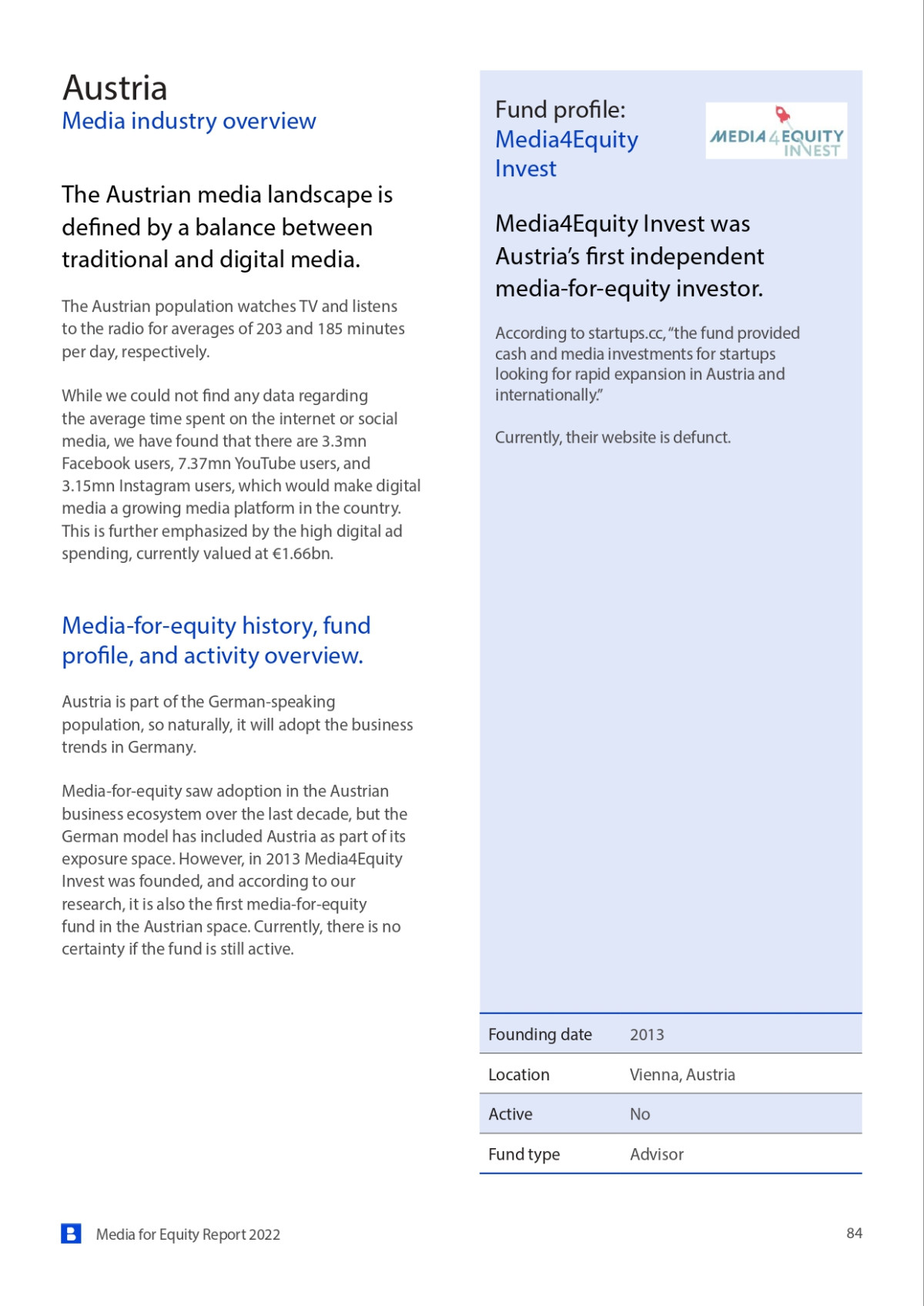 As part of our 2022 report conclusion, we anchored out some directions for media-for-equity investments for the years to come. The model will become increasingly popular, and with the evolution of the media industry, we expect to see new forms of advertising being used in exchange for equity, such as influencer marketing. Similarly, OTT platforms will give rise to media buying technologies, enabling upcoming companies to gain direct access to media buying, such as performance marketing.