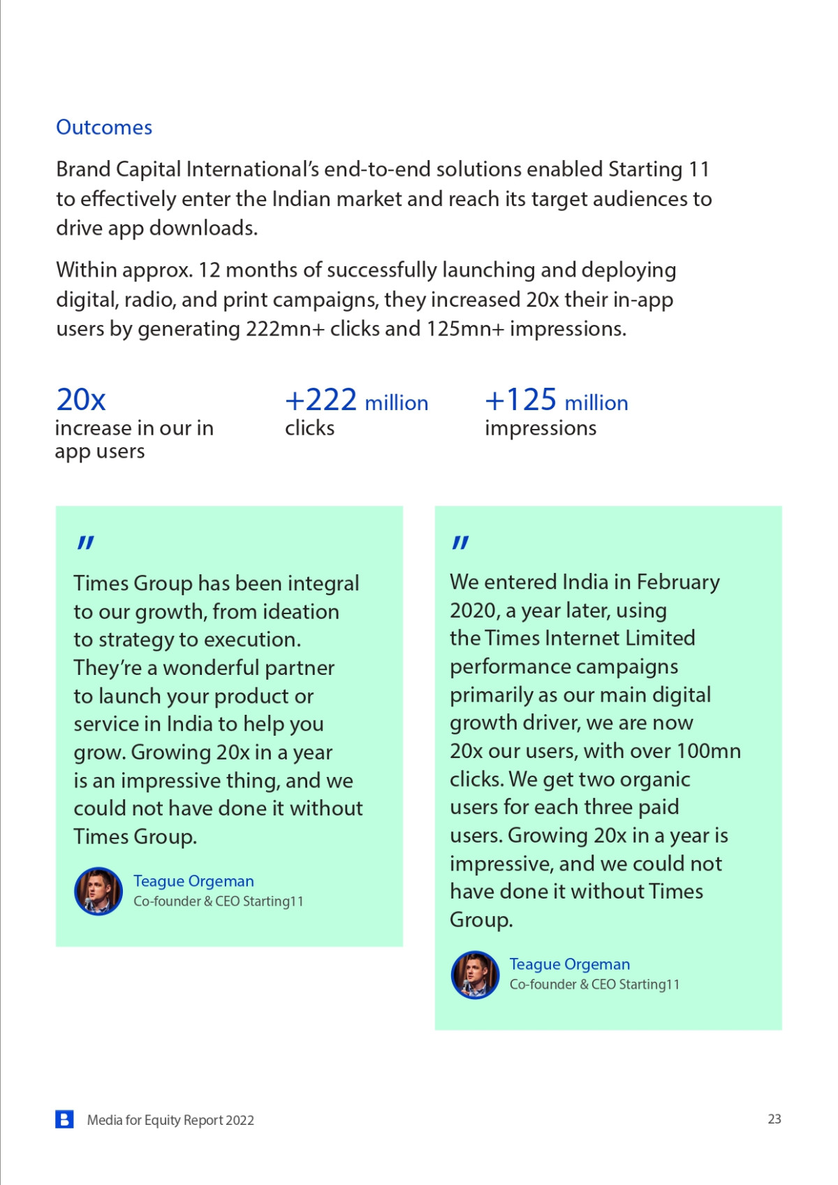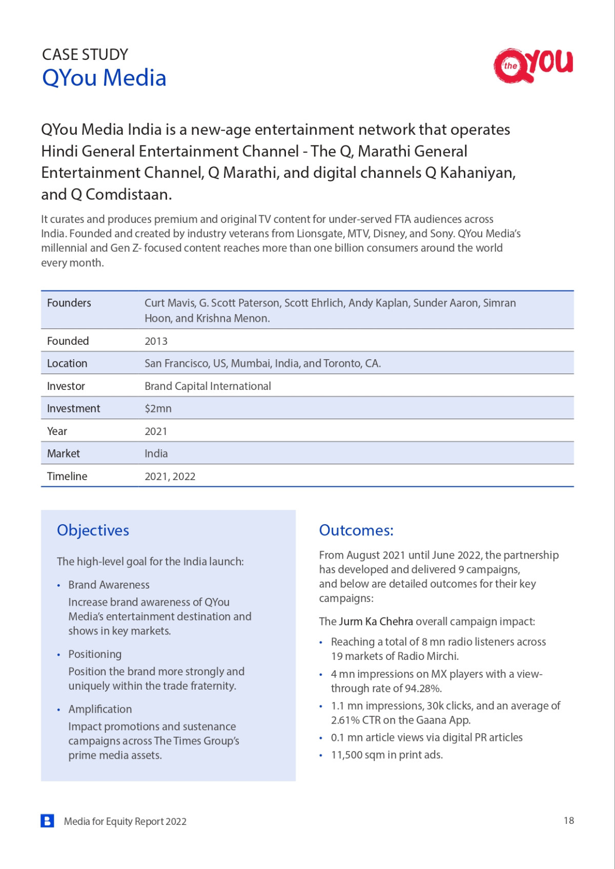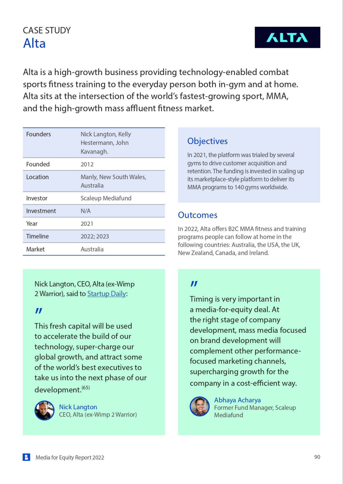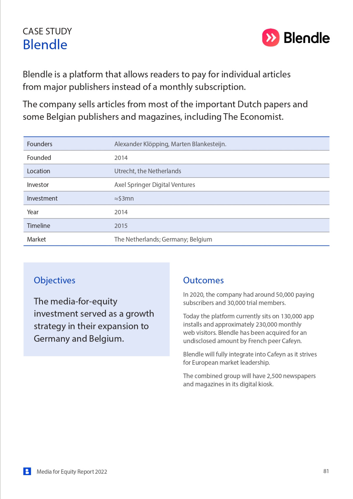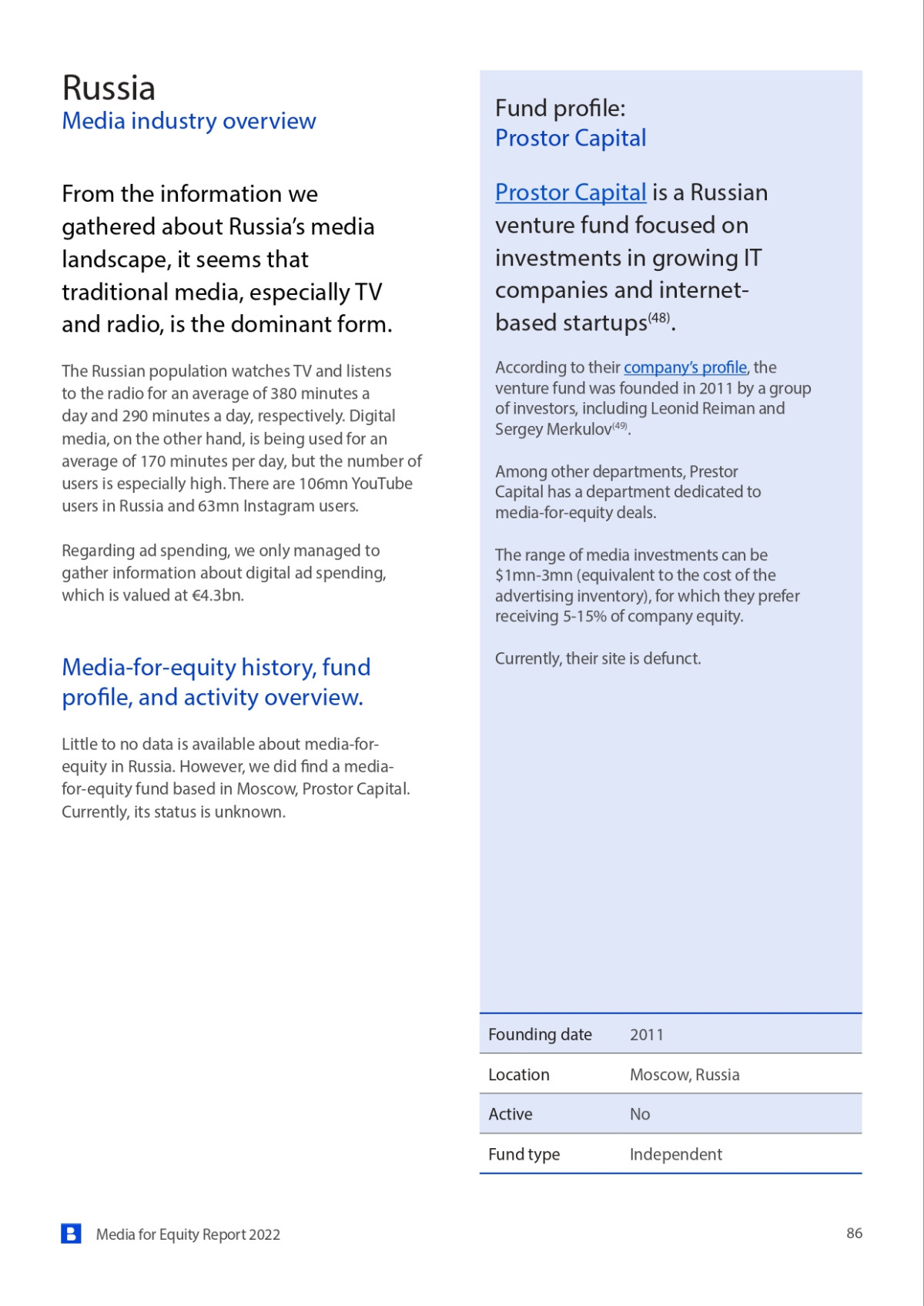 As part of our 2022 report conclusion, we anchored out some directions for media-for-equity investments for the years to come. The model will become increasingly popular, and with the evolution of the media industry, we expect to see new forms of advertising being used in exchange for equity, such as influencer marketing. Similarly, OTT platforms will give rise to media buying technologies, enabling upcoming companies to gain direct access to media buying, such as performance marketing.