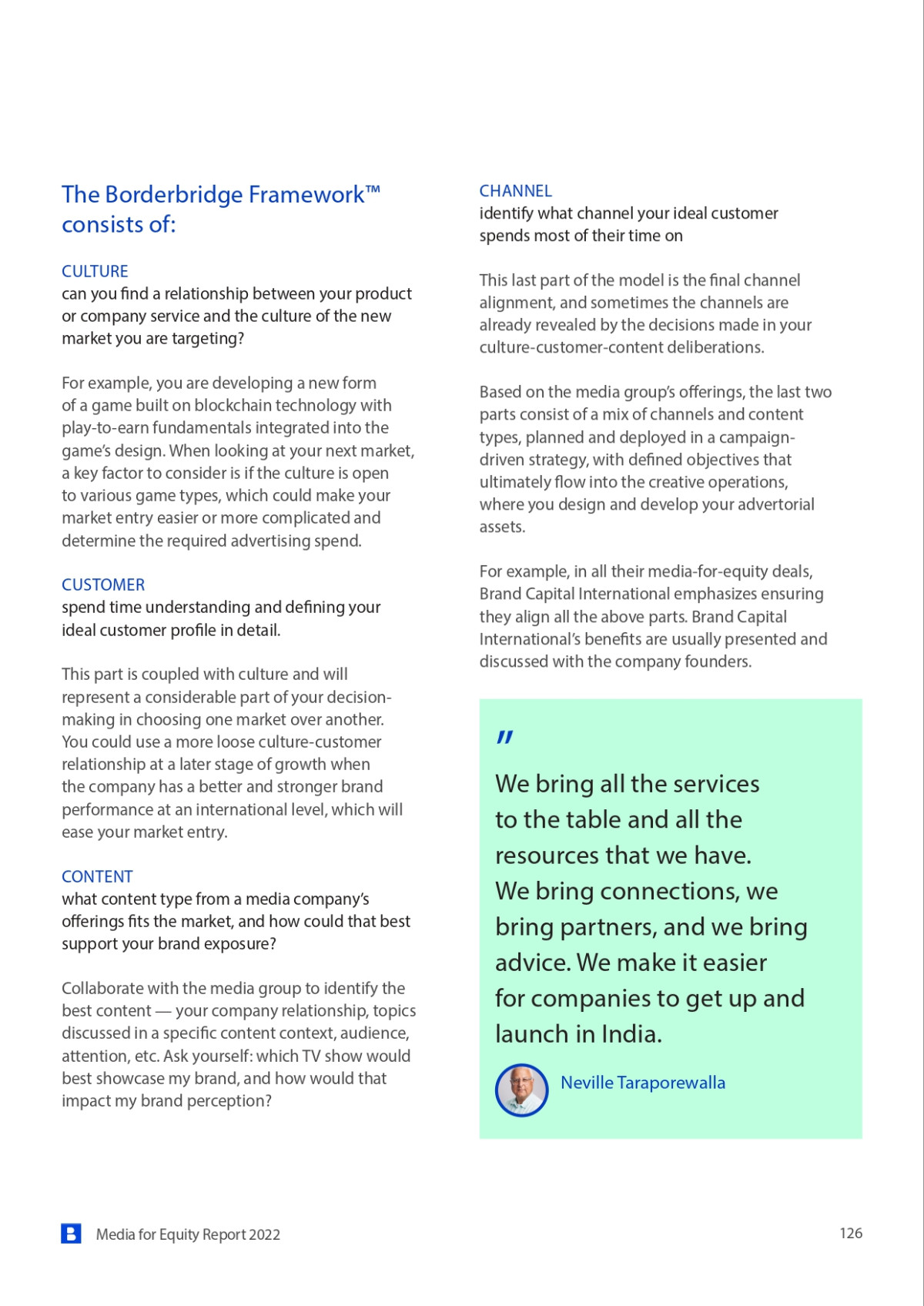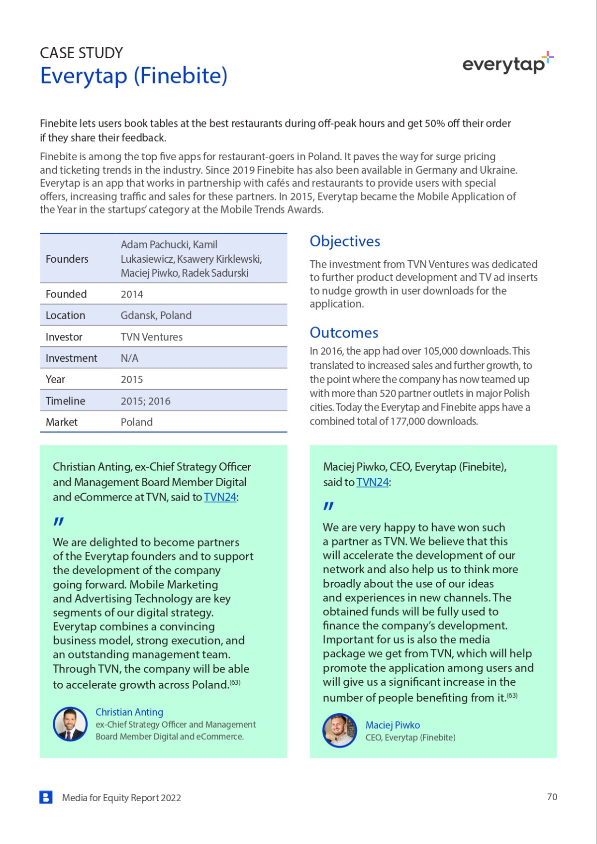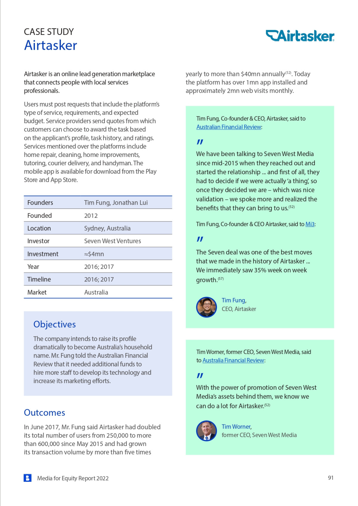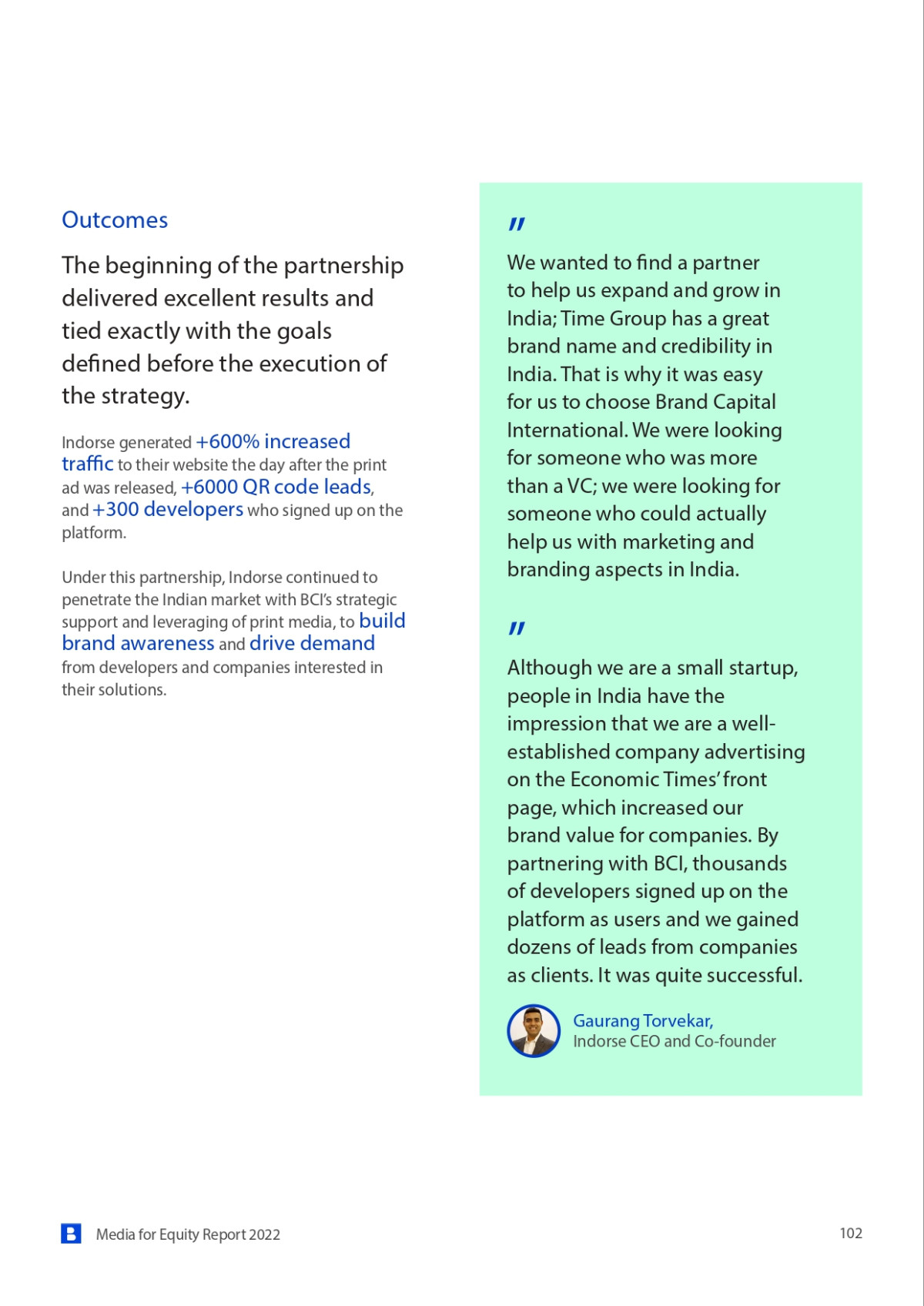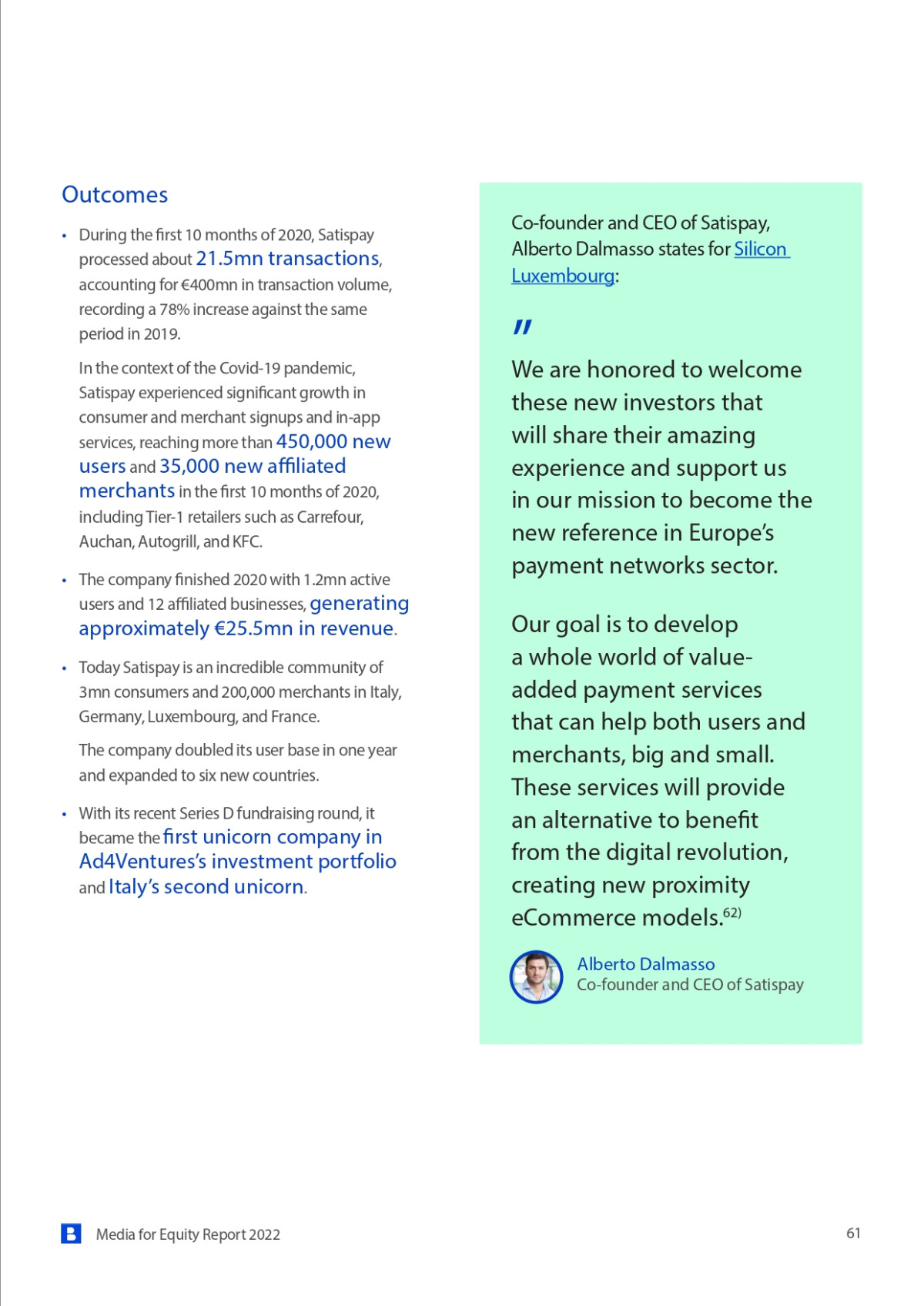 As part of our 2022 report conclusion, we anchored out some directions for media-for-equity investments for the years to come. The model will become increasingly popular, and with the evolution of the media industry, we expect to see new forms of advertising being used in exchange for equity, such as influencer marketing. Similarly, OTT platforms will give rise to media buying technologies, enabling upcoming companies to gain direct access to media buying, such as performance marketing.