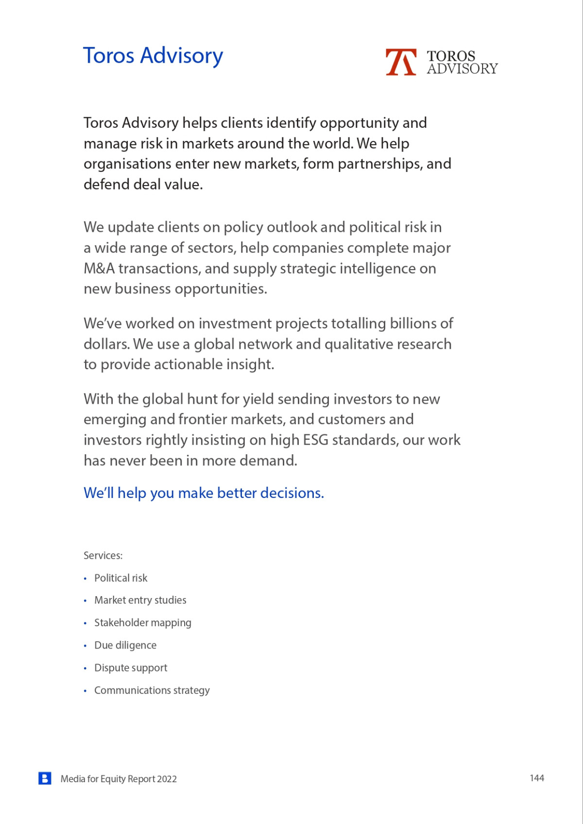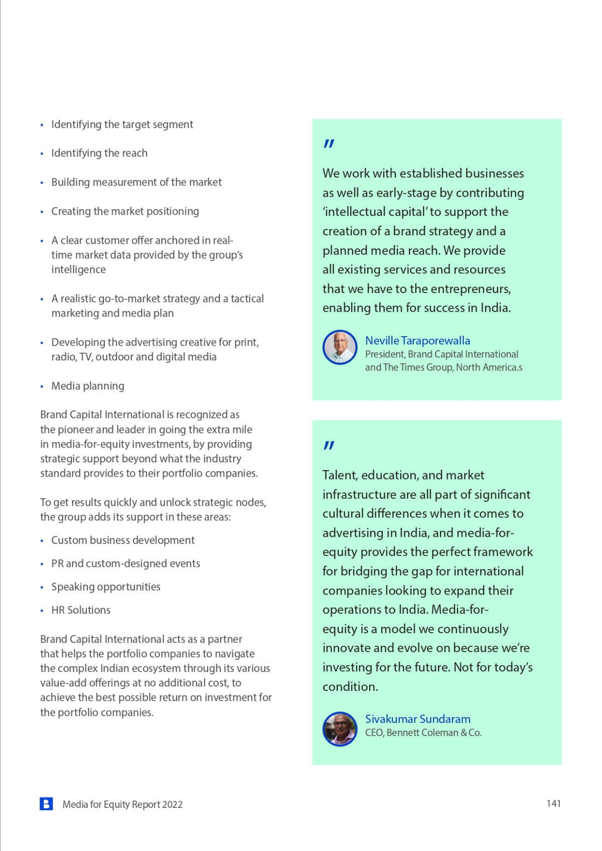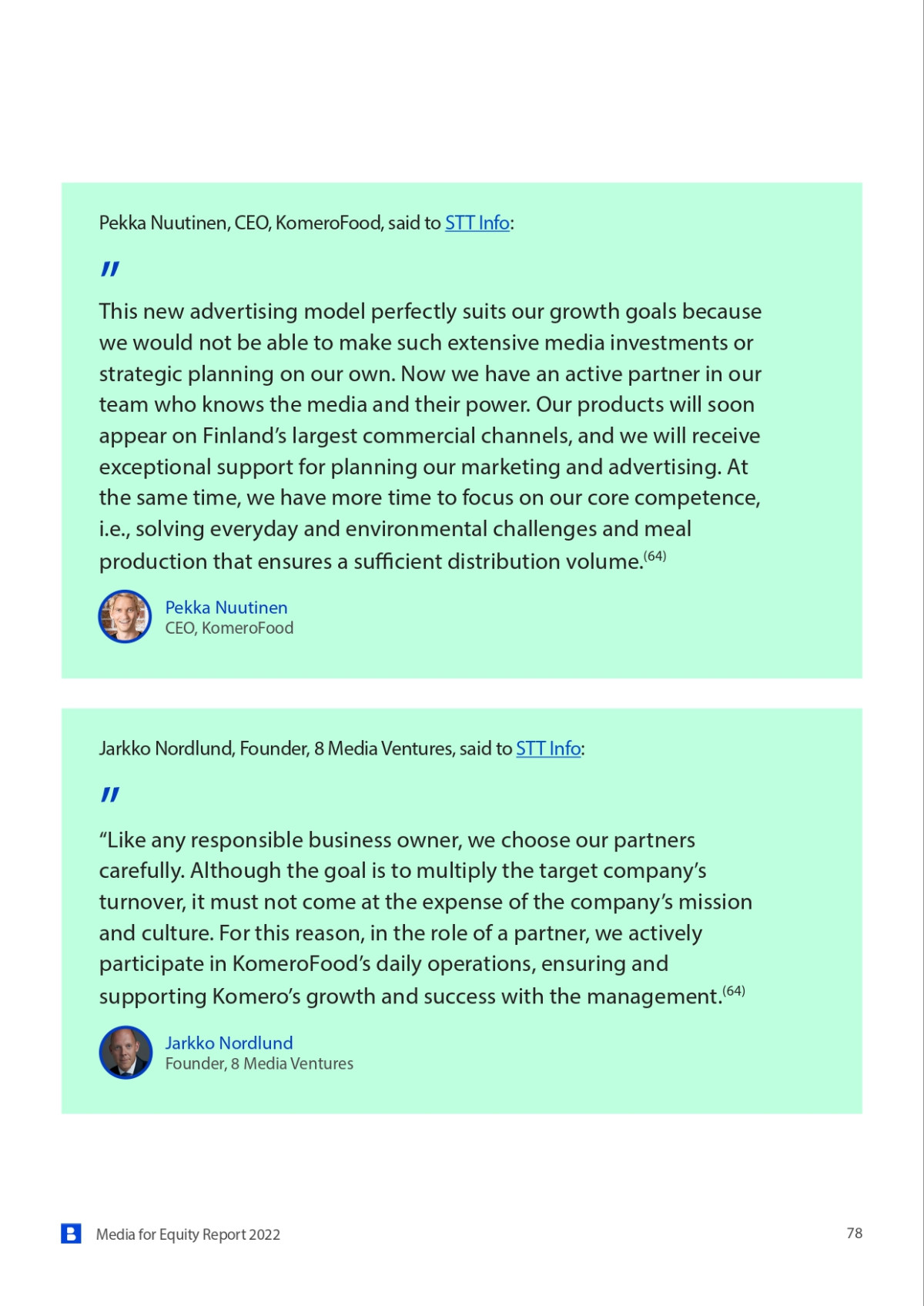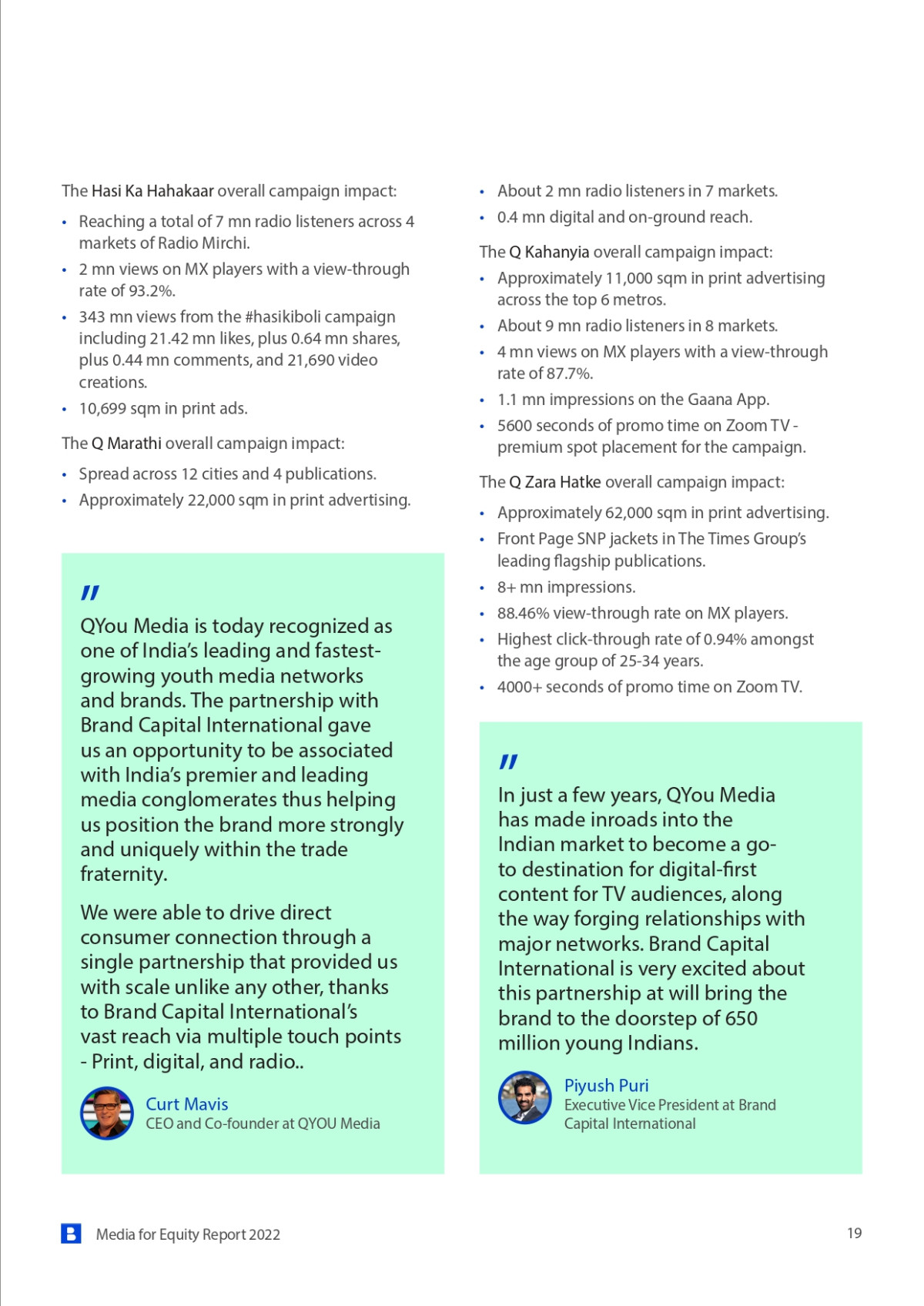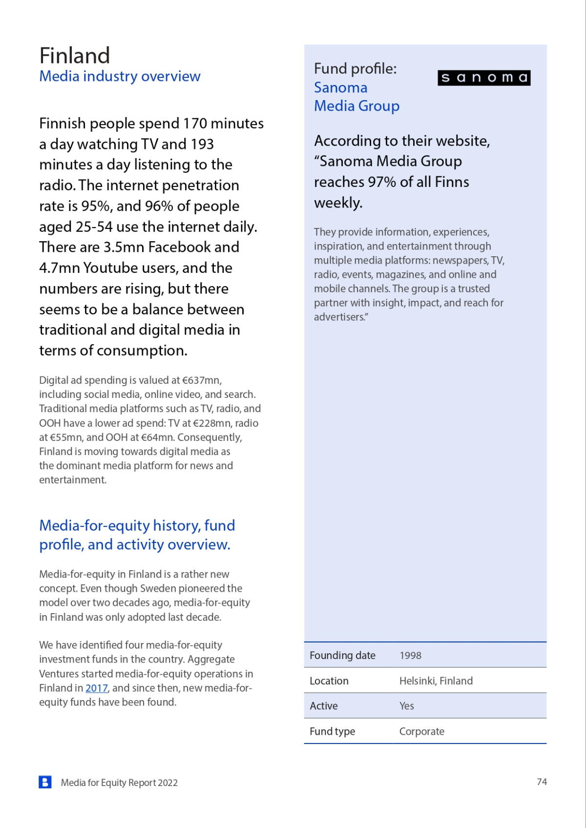 As part of our 2022 report conclusion, we anchored out some directions for media-for-equity investments for the years to come. The model will become increasingly popular, and with the evolution of the media industry, we expect to see new forms of advertising being used in exchange for equity, such as influencer marketing. Similarly, OTT platforms will give rise to media buying technologies, enabling upcoming companies to gain direct access to media buying, such as performance marketing.