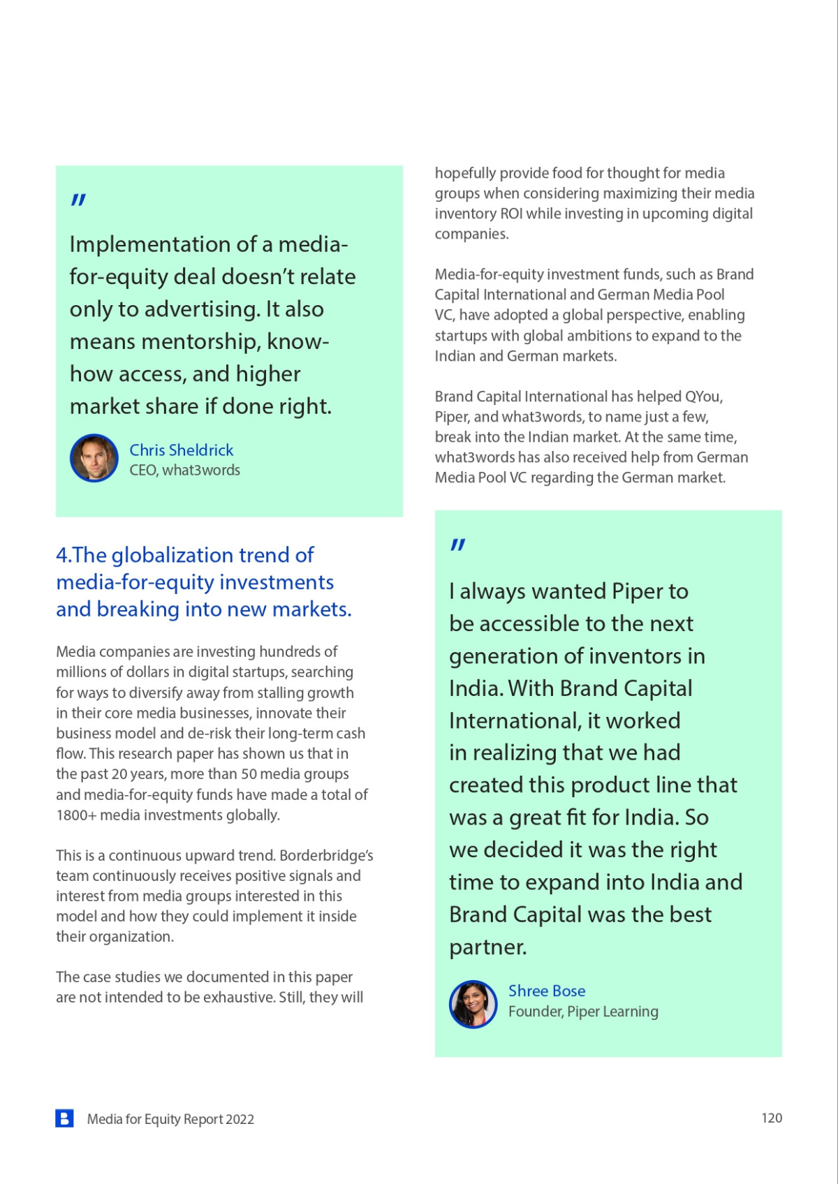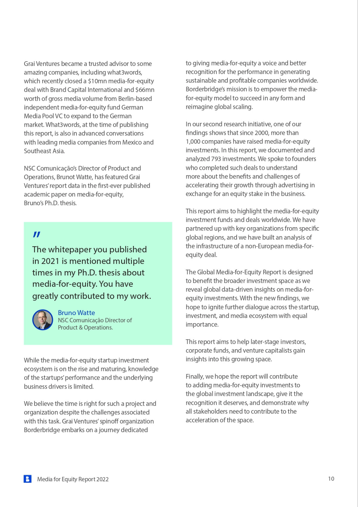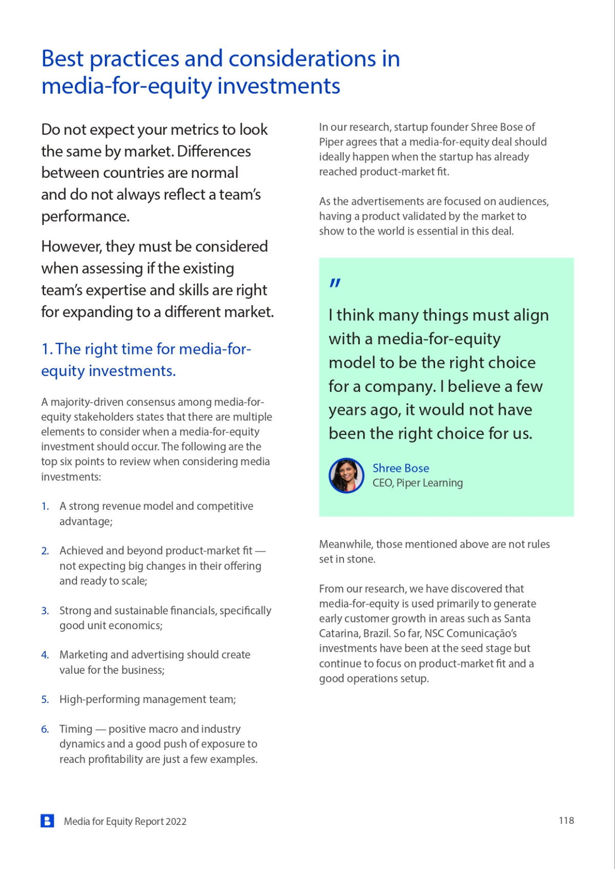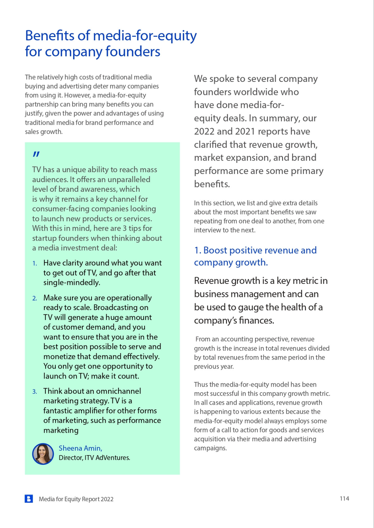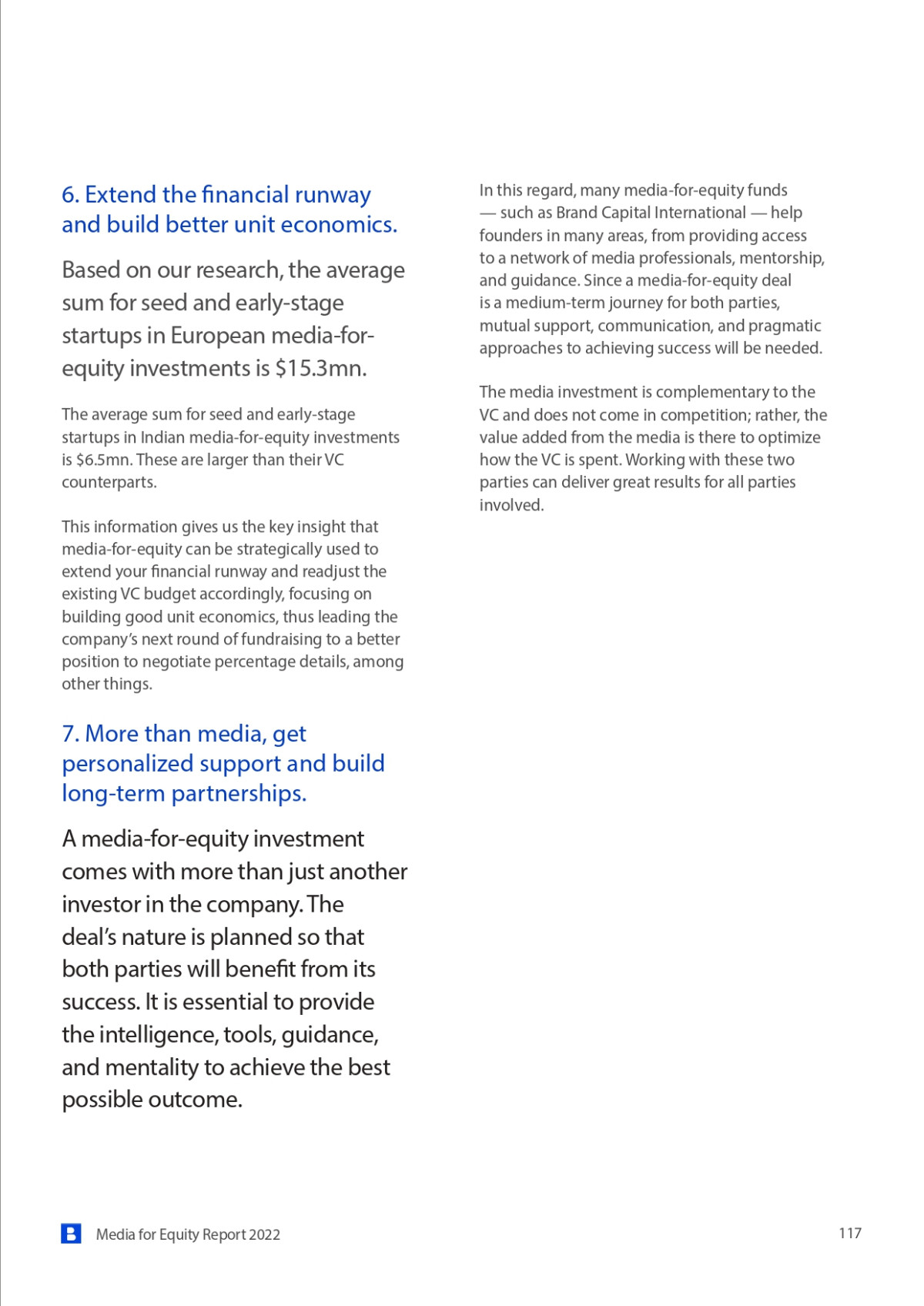 The Global Media-for-Equity Report is designed to benefit the broader investment space as we reveal global data-driven insights on media-for-equity investments. With the new findings, we hope to ignite further dialogue across the startup, investment, and media ecosystem with equal importance.