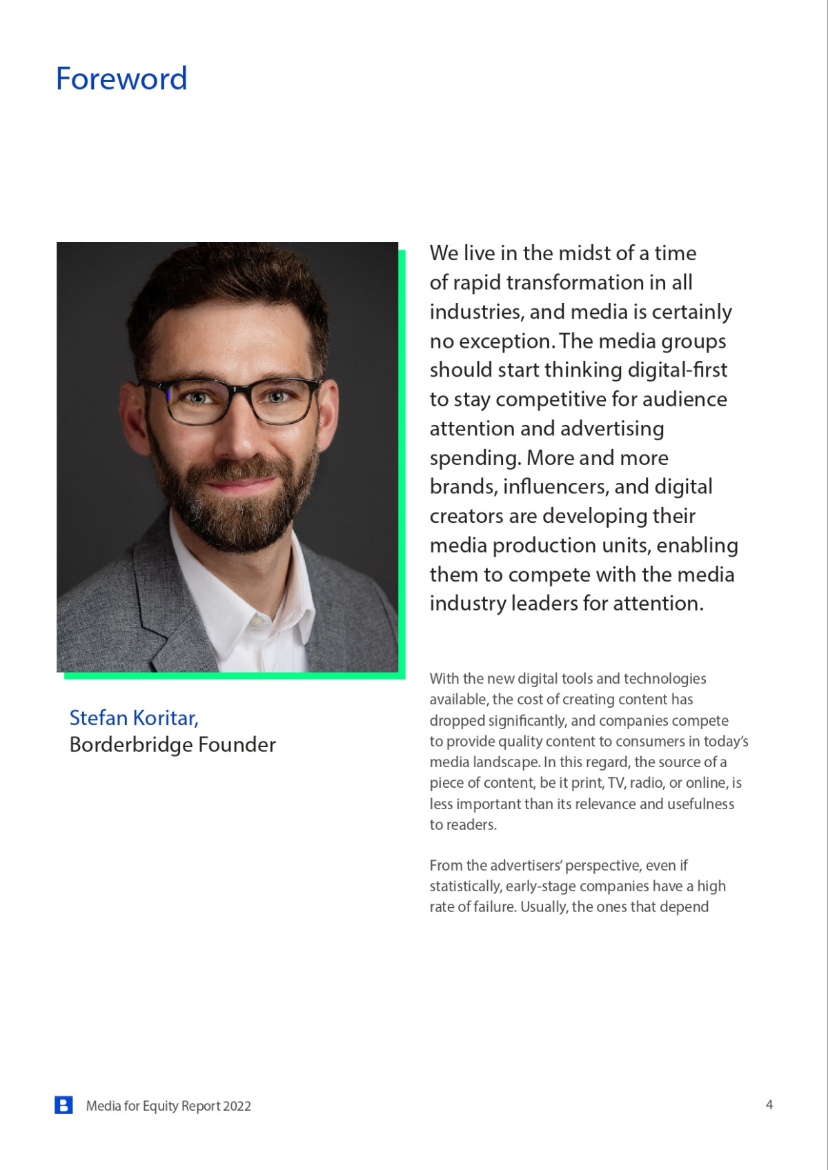“Central and Eastern European media groups are presented with the opportunity to build an asset class portfolio that can offer high returns. Exposing medium to small or none of the classical risks of losing their investment, as we can see in private equity and venture capital,” adds Stefan Koritar, Director at Borderbridge and Grai Ventures.