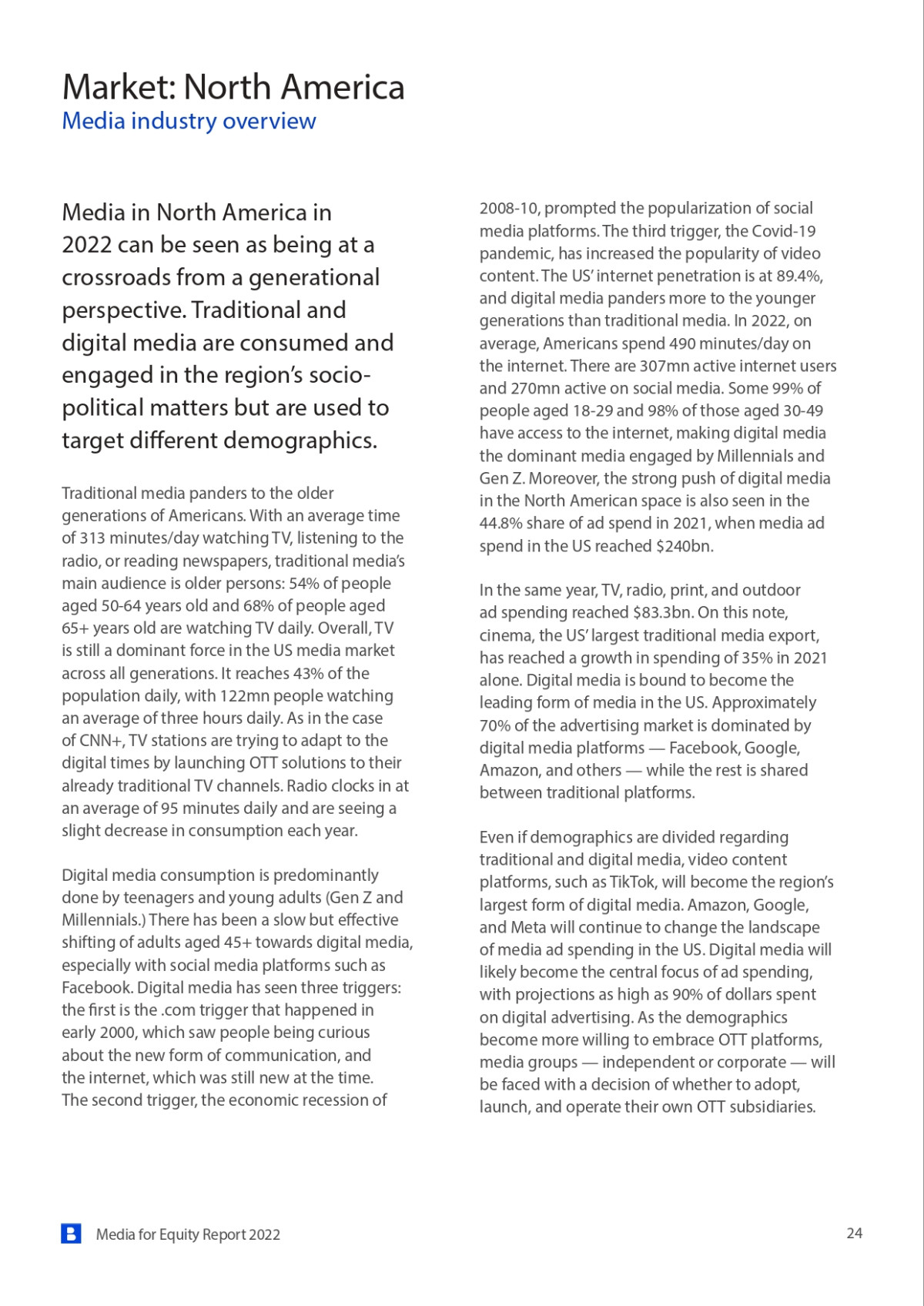 - Access the web report here: https://www.borderbridge.org/media-for-equity-2022/online