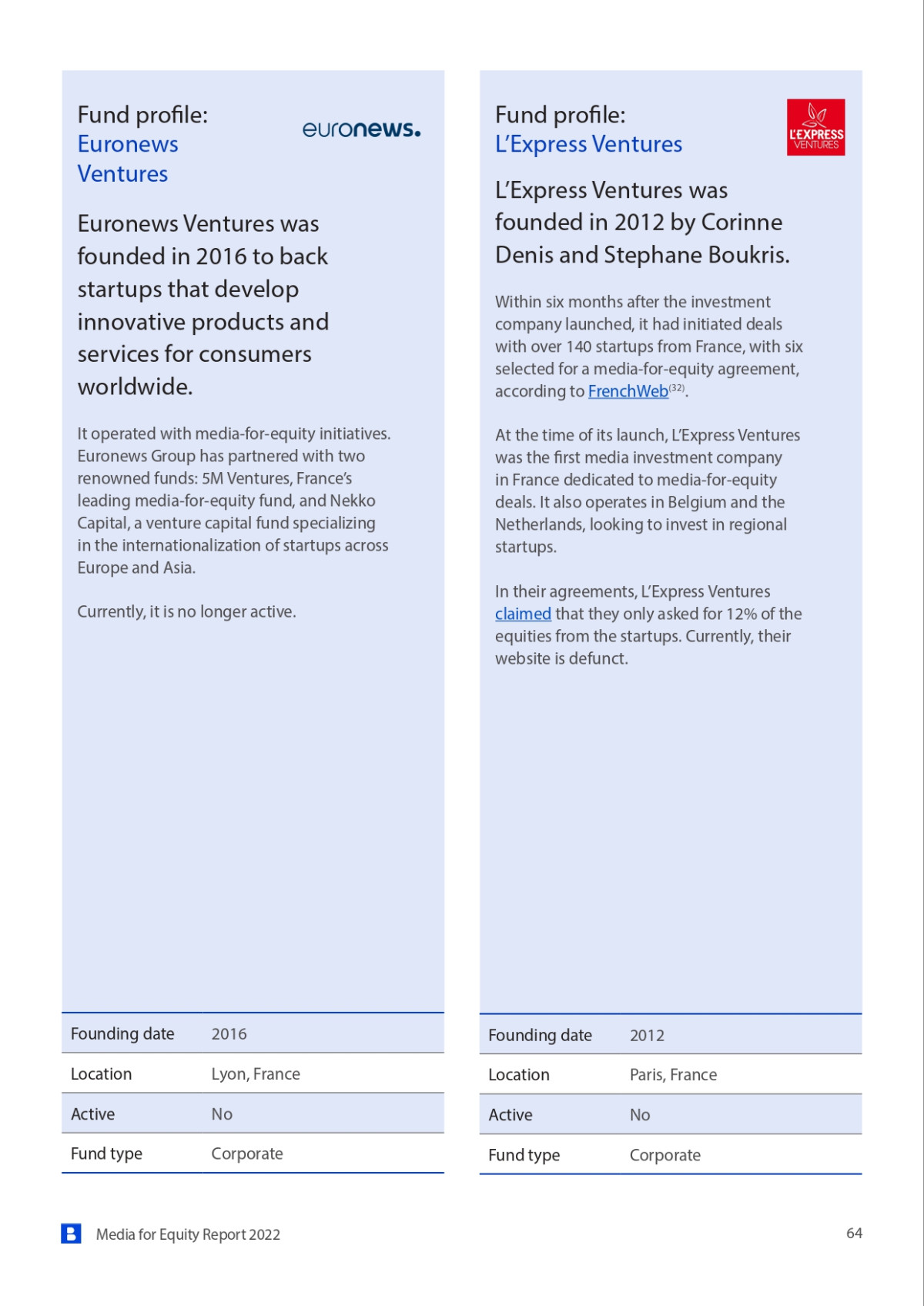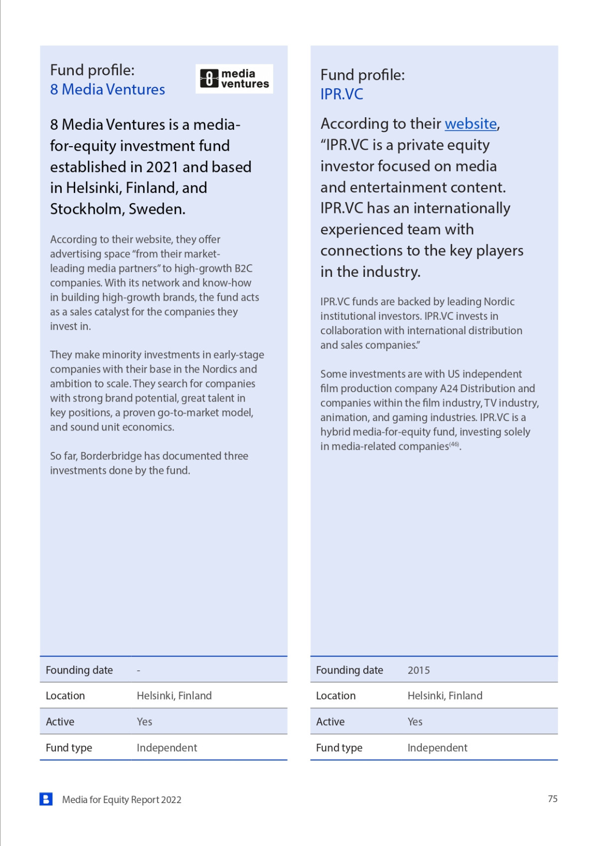 In the last three years, 10 new media-for-equity funds have been established, 20% of the total media capital funds we have identified and documented - showcasing media-for-equity investments on a positive growth trajectory.