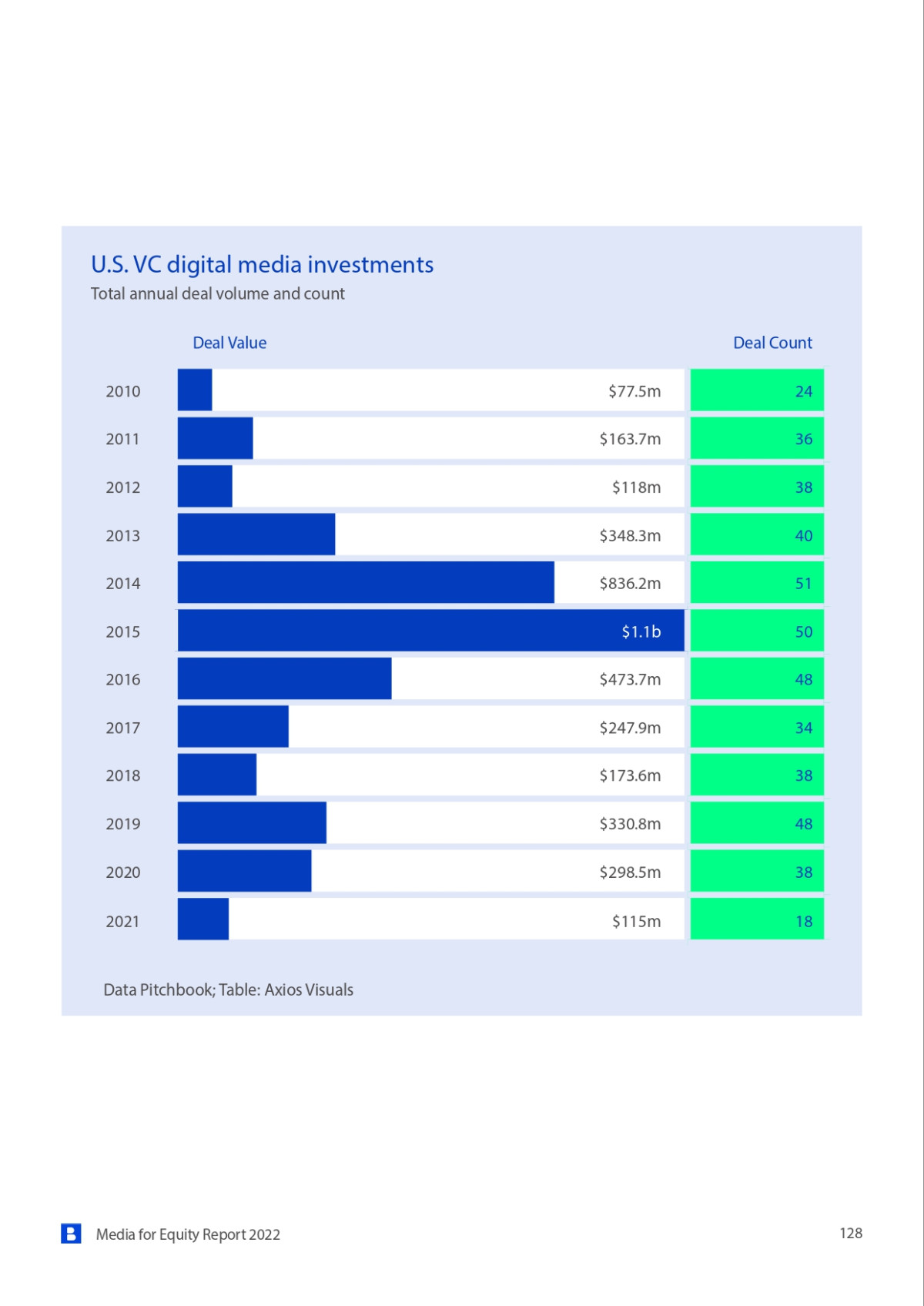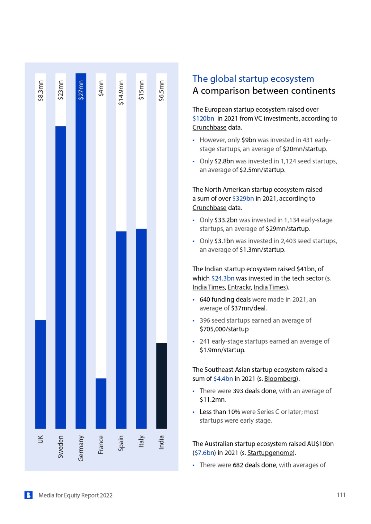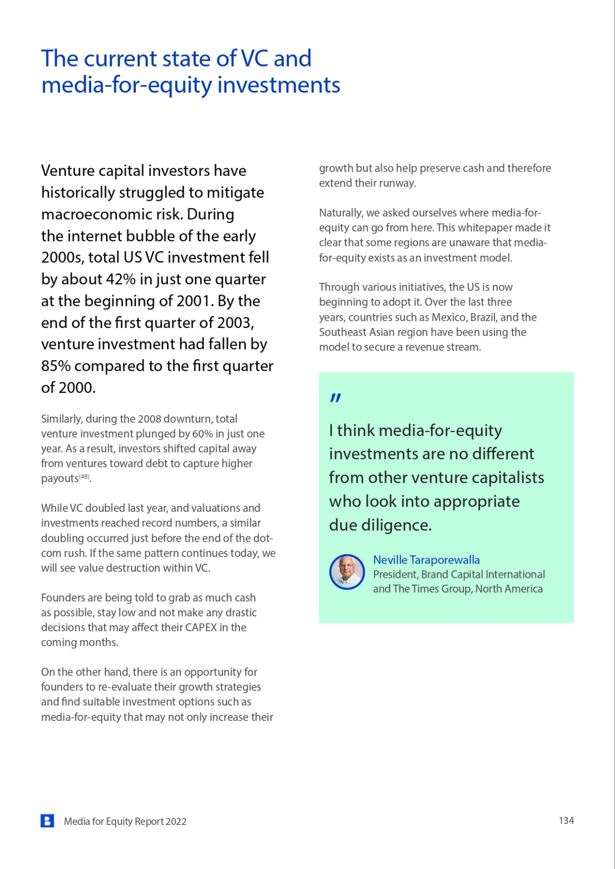 - The latest research shows that media-for-equity investments are 3X higher than VC investments at seed and early-stage funding.