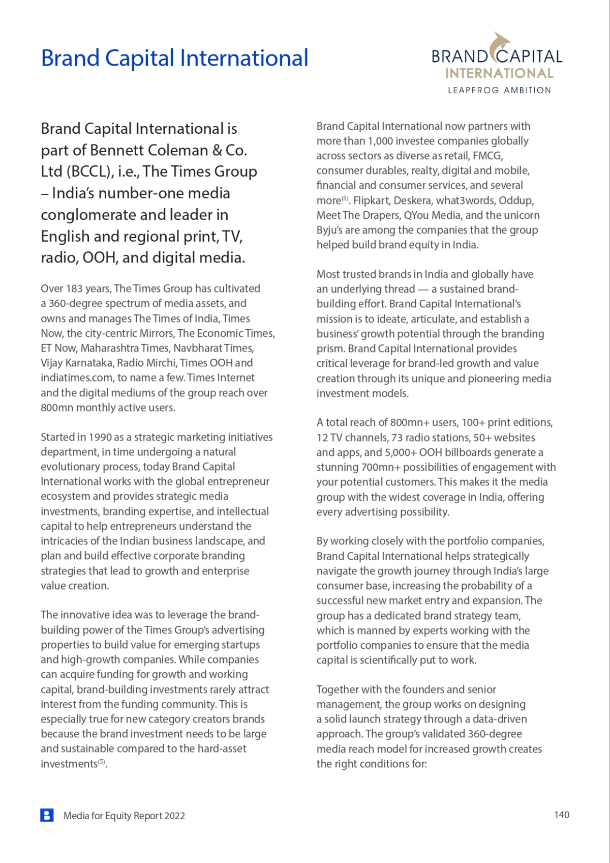 - 50+ media groups globally, are actively investing their media for equity, including The Times Group of India, TelevisaUnivision, Grupo Globo, ITV, BBC, Newscorp Australia, M6, RTL, and TF1.
