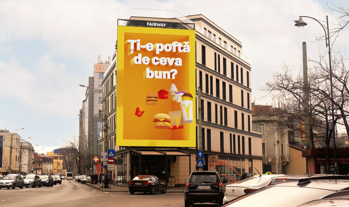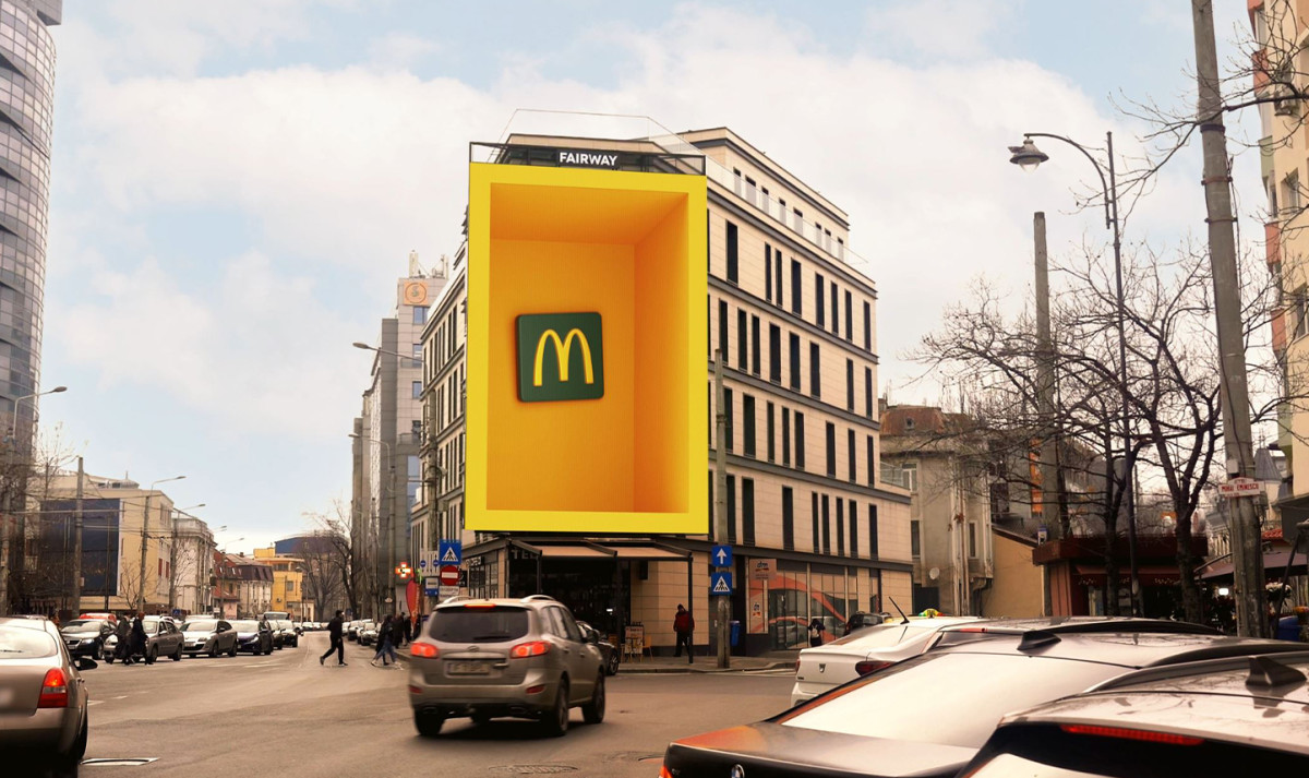 McDonald’s România, prin intermediul agenției de media OMD România a realizat la începutul acestei luni primul spot 3D cu iluzie anamorfică difuzat pe noua platformă digitală, execuția fiind semnată de Wink Public Multimedia.