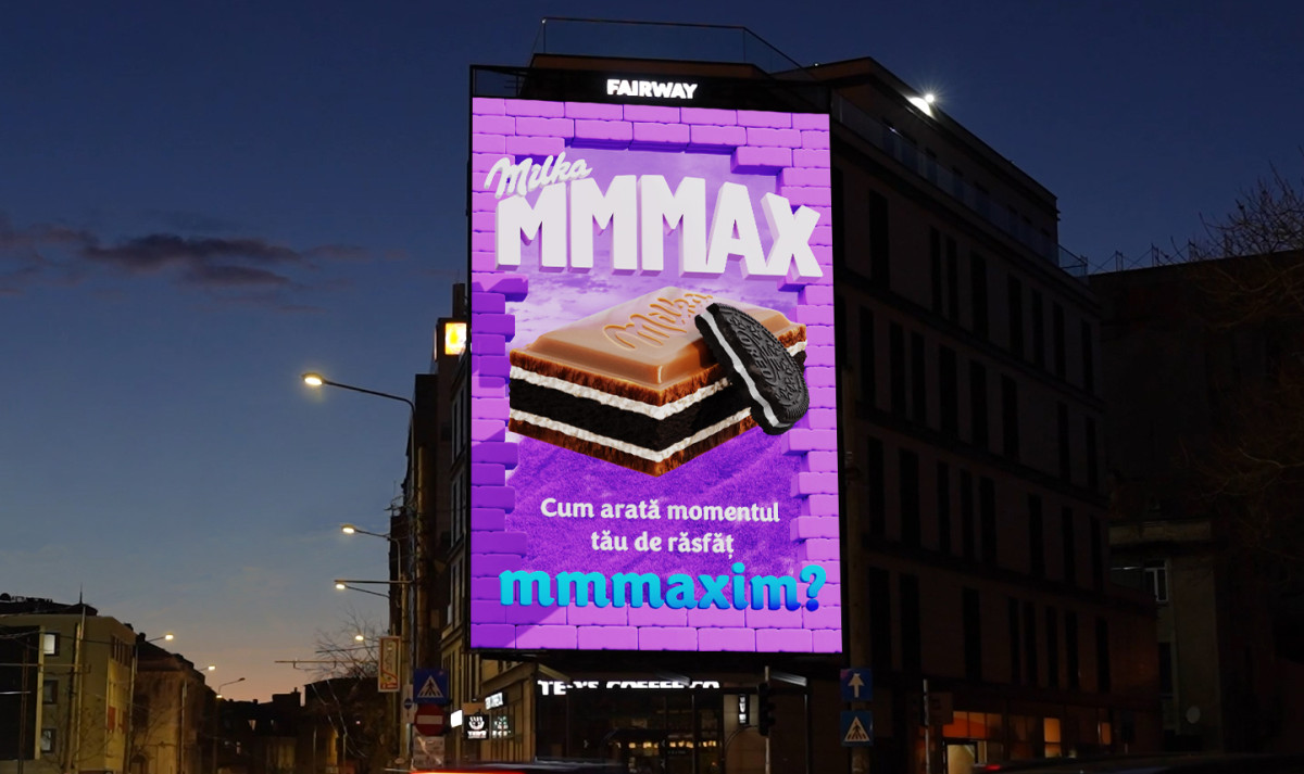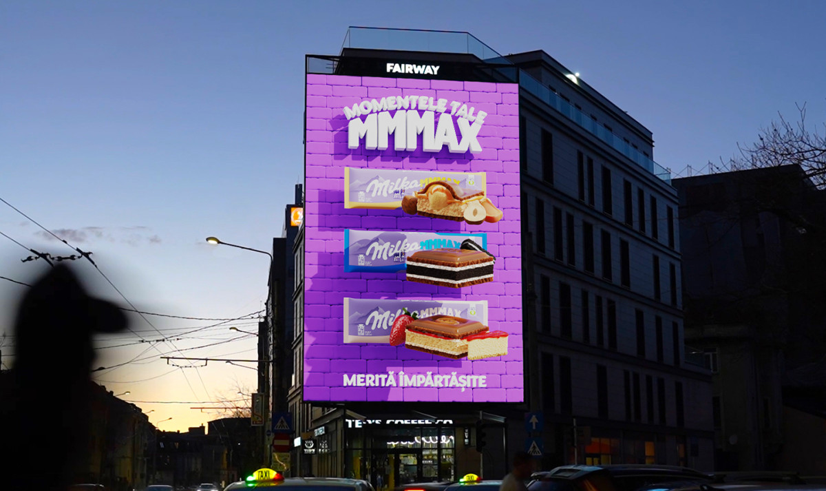 Activarea 3D OOH este parte din noua campanie de comunicare Milka MMMAX, care își propune să amplifice ideea că atunci când guști o Milka MMMAX te bucuri de straturi cremoase de ciocolată în combinații irezistibile și de un moment de răsfăț mmmaxim.