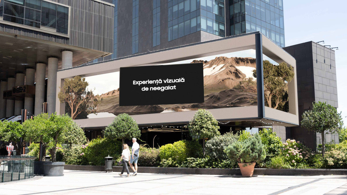 Campania 3D OOH promovează soluția Samsung de afișaj digital pentru mediul business, The Wall All-in-One, și este printre primele – dacă nu chiar prima – activare 3D OOH pentru o soluție B2B din România.