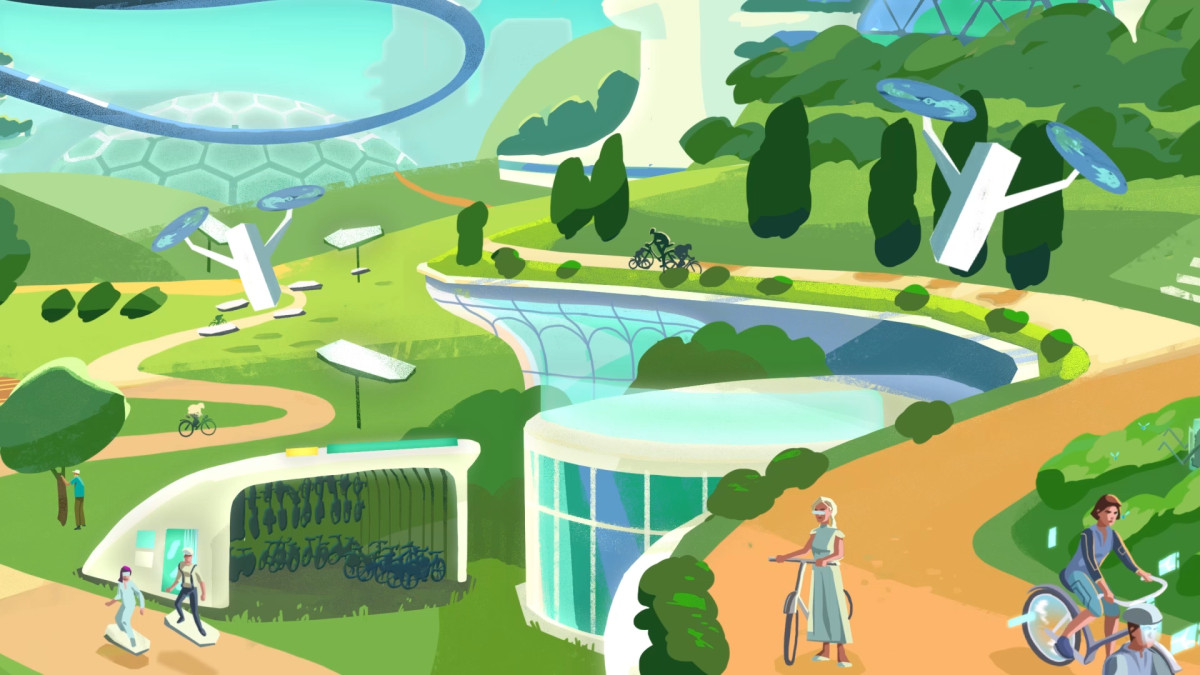 Dintre toate scenariile, acesta s-a detașat în mod evident pentru că face loc frumos și cursiv momentelor de reflecție și pentru că suscită, credem noi, implicarea activă în comunitate, transformarea care vine în pași mici, dar consistenți de la fiecare dintre noi. Pe parte vizuală, am explorat mai multe drumuri, dacă pot spune așa, dar acesta a fost formula câștigătoare - o utopie, ca o pictură complexă, cu multe detalii și posibilități, plină de culoare în care progresul tehnologic coexistă cu grija pentru natură.