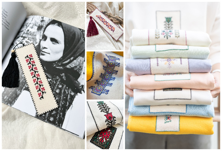 Izvoade culese din paginile vechilor albume de cusături românești, bucăți de broderie dintr-o ie, ștergar, altiță sau textile țărănești, sunt recusute în stilul propriu și devin obiecte precum semne de carte, broșe, elemente decorative pe bază de gherghef sau articole vestimentare.