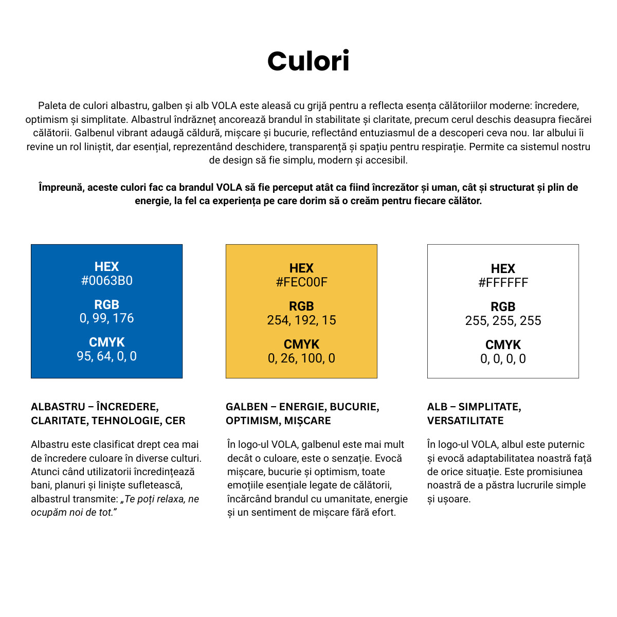 Noua identitate vizuală este aliniată strategiei de branding la nivel de grup, urmând aceeași direcție adoptată recent de brandul internațional GoVola, precum și brandul polonez Fru. Logo-urile împărtășesc aceeași paletă cromatică, oferind o imagine unitară și poziționând grupul din care face parte Vola ca un brand matur, adaptat tendințelor din turismul digital.