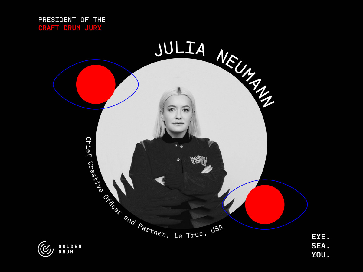 Președintele juriului Craft Drum, Julia Neumann, Chief Creative Officer și Partner la Le Truc, SUA, este un pionier în publicitate, modelând viitorul multor branduri globale. Anterior, a ocupat roluri cheie la agenții de top precum Johannes Leonardo, TBWA/Chiat Day, Saatchi & Saatchi, Wieden+Kennedy, BBH, MullenLowe și Y&R. A colaborat cu clienți de elită precum Kraft Heinz, Instagram, Uber și Volkswagen, realizând campanii revoluționare precum Unfrosted (Kellanova Pop-Tarts), Billie Jean King Your Shoes (Adidas), FlyBabies (JetBlue) și Major Melon (MTN Dew). Cariera ei se distinge prin proiecte premiate și campanii de impact care influențează profund cultura industriei creative.