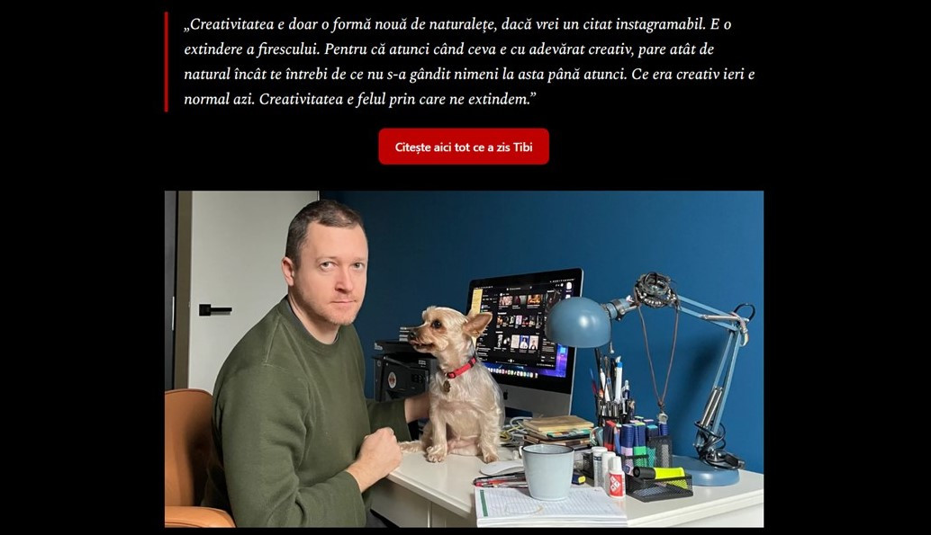 E frumos felul în care încrederea oamenilor și evoluția proiectului m-au responsabilizat. E frumos că vreau să am grijă de încrederea asta și de timpul oamenilor, pentru că nu-i puțin lucru, mai ales acum când știm cât de strident și asurzitor e zgomotul de fond. E frumos faptul că oamenii îmi dau feedback și găsesc sens în ceea ce fac.