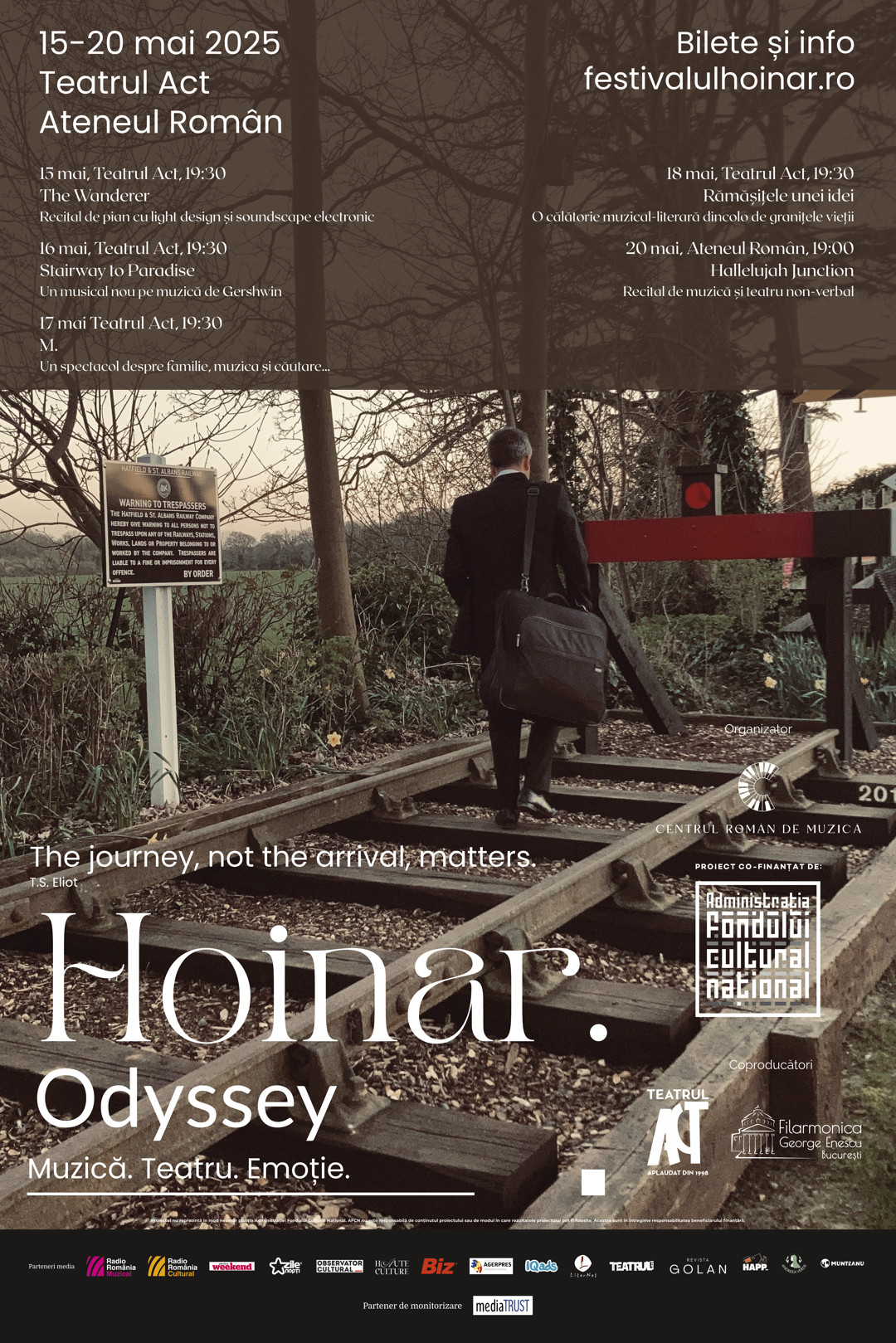 Doisprezece artiști români și internaționali aduc publicului din România cea de-a 8-a ediție Hoinar Festival, în perioada 15 - 20 mai. Festivalul începe mâine cu o ediție care nu se ferește de întrebări sau teme grele și care promite cel mai complex program de până acum: 5 spectacole, 5 instalații artistice, 4 dezbateri și 3 ateliere și concerte cu elevi și profesori. Fiecare seară de festival va spune o poveste în care călătoria este agentul primordial, declanșatorul conflictului, izbăvitorul și judecătorul eroilor deopotrivă.