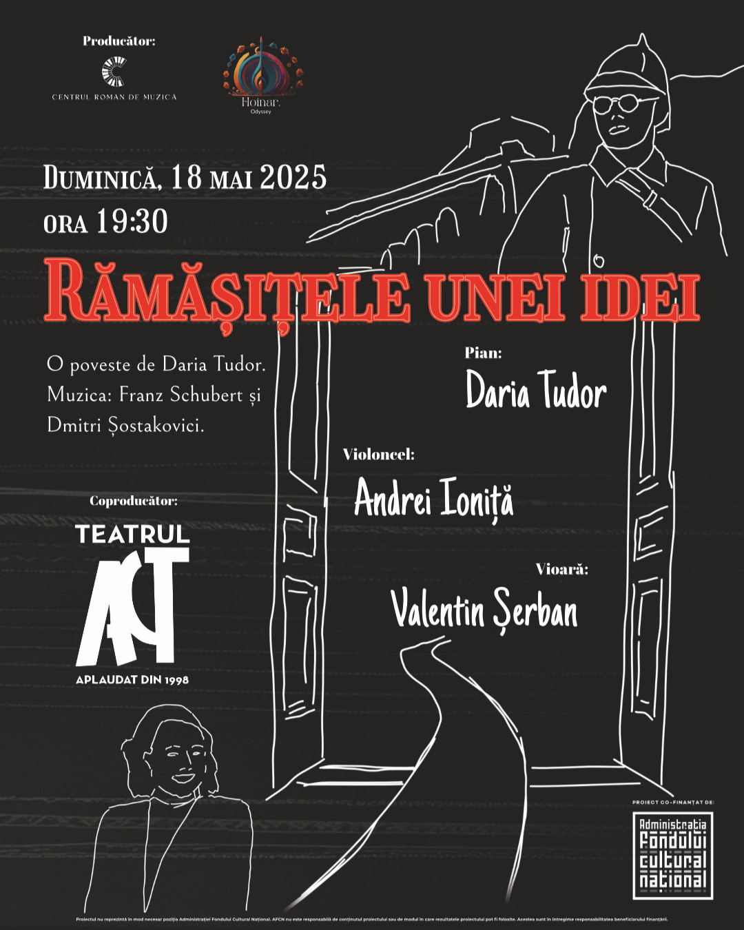 Proiect cultural co-finanţat de Administraţia Fondului Cultural Naţional. Proiectul nu reprezintă în mod necesar poziţia Administrației Fondului Cultural Național. AFCN nu este responsabilă de conținutul proiectului sau de modul în care rezultatele proiectului pot fi folosite. Acestea sunt în întregime responsabilitatea beneficiarului finanțării.