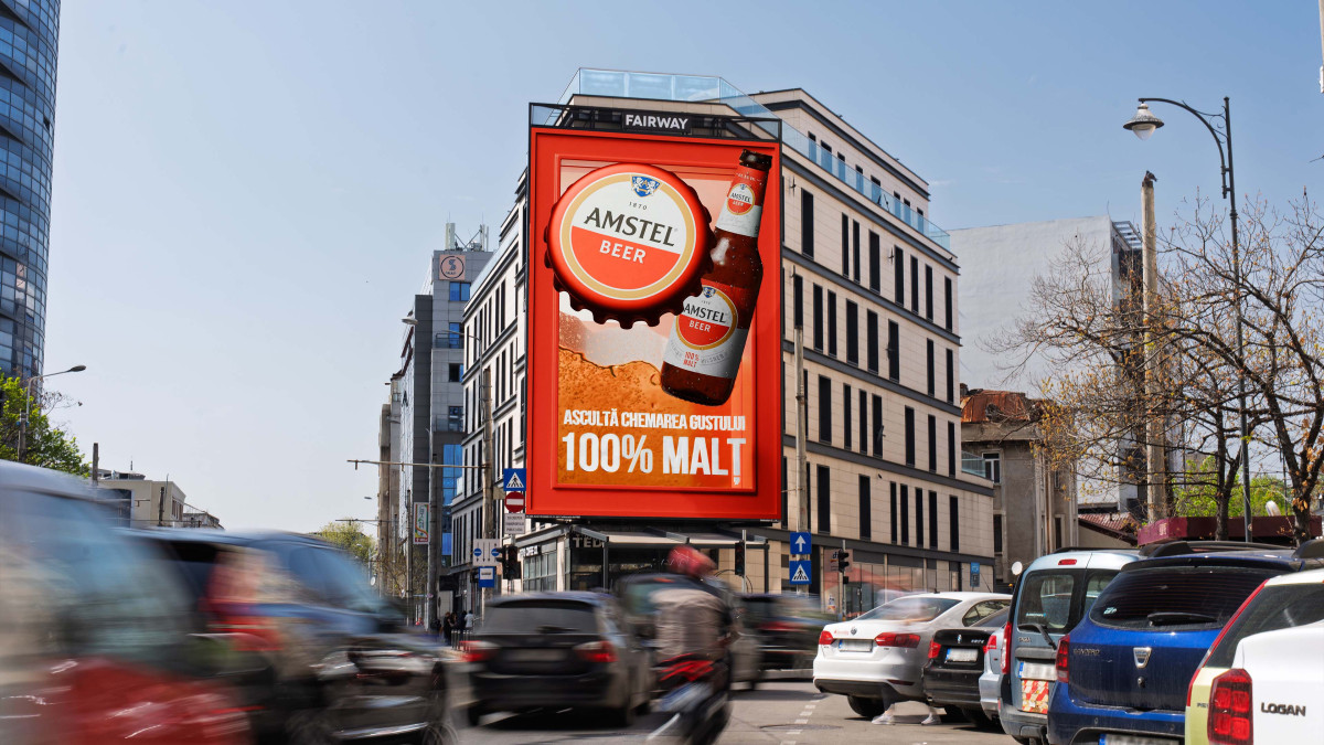 O sticlă de Amstel® 100% malț transformă ecranele digitale din Iași, Craiova și București în invitații la reconectare. Execuțiile anamorfice semnate de WINK fac parte din campania de lansare Amstel® în România, prima marcă internațională din portofoliul de bere mainstream introdusă de HEINEKEN România pe piața locală.
