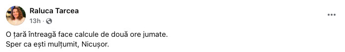 Și poate că am mai învățat ceva săptămânile astea, totuși. Că ura și furia nu se combat cu ură și furie. Dezbatere nu înseamnă umilire și denigrare, umor nu înseamnă batjocură. Pentru a nu mai ajunge aici, e mare nevoie să reînvățăm respectul pe care ni-l datorăm unii altora.