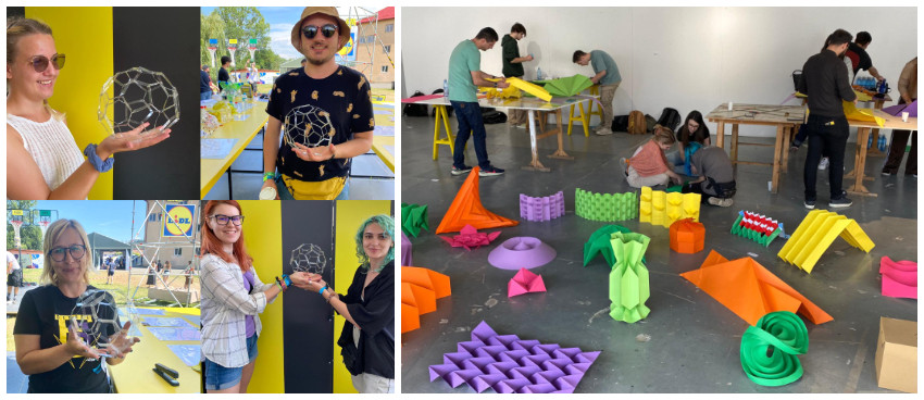 Un proiect la care am lucrat cu mare plăcere de curând propune un kit de module de fetru debitate laser cu care utilizatorul își asamblează un covoraș hexagonal și opțional un coș, cutie sau chiar un frisbee. El a fost folosit de participanții la tururile ghidate De-a arhitectura x ASAP la RDW2025.
