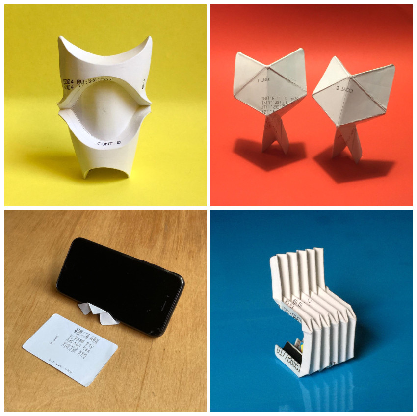De la forme figurative (portrete, animale, nave spațiale), jucării modulare, inele, studii de mobilier sau packaging, până la studii geometrice abstracte de tip tesselation (teselații) sau structuri dinamice (titirez) sau elastice (resorturi) toate au găsit acest mediu de modelare 2D-3D foarte expresiv și stimulant. Îmi place să îl numesc atelier de machetare portabil. Am creat chiar și un suport de telefon mobil funcțional, dintr-o singură cartelă de metrou. Ultimul meu produs din zona #creditcardsizeorigami este un embosser printat 3D cu care obțin prin presare liniile de pliere, foarte utile pentru realizarea mai rapidă a unui inel origami creat acum doi ani.