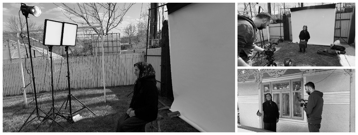 Iar de la cadrele de pe fundal alb mi-am dorit să le avem pe personaje (e foarte ciudat să vorbesc așa despre Laura și despre bunica) într-un mediu curat și controlat pe care ei, totuși, să-l ignore. Chiar și acolo am păstrat la montaj mai mult reacții de behind the scenes. Am vrut să fie ca o serie de portrete, dar și aici cu mișcările de dinainte sau după ce se face click și cu privirile în spatele camerei.