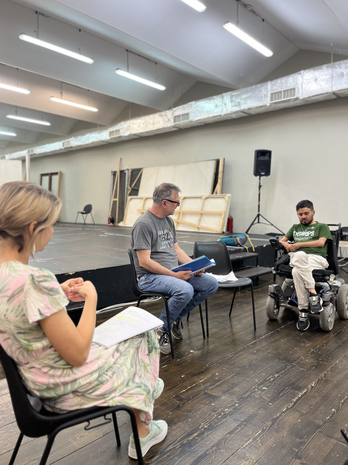 Spectacolul regizat de Laurențiu Rusescu are în distribuție 5 actori-amatori cu dizabilități motorii, fiind o premieră pentru România.