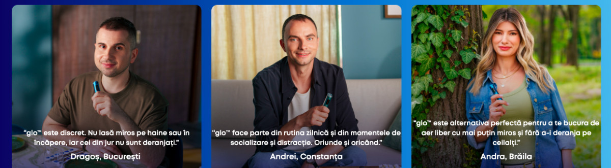 "Adevărul nostru? Tehnologia glo™ schimbă mai mult decât modul în care utilizatorii adulți pot experimenta tutunul încălzit și produsele destinate inhalării fără ardere din înlocuitori de tutun, reușind să transforme momentele care contează pentru utilizatorii noștri", spun cei de la glo™.