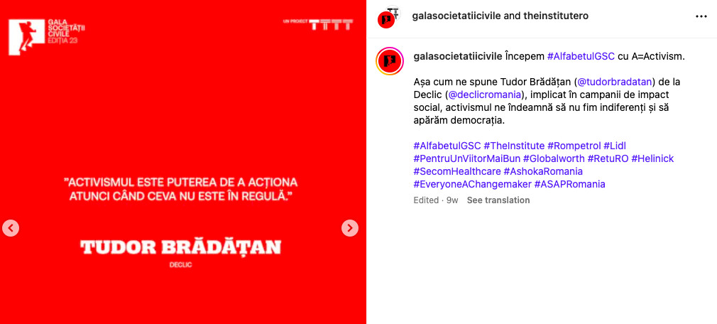 Gala onorează oameni care aleg să nu stea deoparte, iar rolul de ambasador vine cu datoria de a face vizibilă această muncă. De a contribui la păstrarea unui spațiu public în care vocile critice, implicarea civică și acțiunea colectivă nu doar că au loc, dar sunt încurajate și apărate.