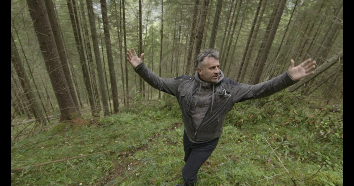 Cu Tiberiu a fost fascinant, dar și greu. Am fost martorii spectacolului digital pus în scenă de Tiberiu. Am cutreierat codrii și am chemat poliția în tot felul de locuri unde Tiberiu sesiza nereguli în exploatare. Am văzut cum sunt măsluite unele aspecte, cum autoritățile sunt copleșite și ne-am dat seama că natura este azi cea mai vulnerabilă. Dar ne lipsea ceva, motivația personajului. Nu înțelegeam de ce face acest lucru atât de greu. După vedeam cum unii profită de notorietatea lui Tiberiu pentru a-și regla conturile cu ocoalele silvice de pe la ei din localitate. Spre exemplu, să zicem că pădurarul prinde un bărbat cu căruța plină de lemn furat. Îi confiscă căruța și eventual dă amendă. Bărbatul pune mâna pe telefon, îi scrie lui Tiberiu și acesta descinde în comună, face cumva și găsește nereguli în ocol, că doar se fură în toată țara, și tot așa. Văzând asta am vrut să mă las, dar episodul cu bătaia m-a readus în film.