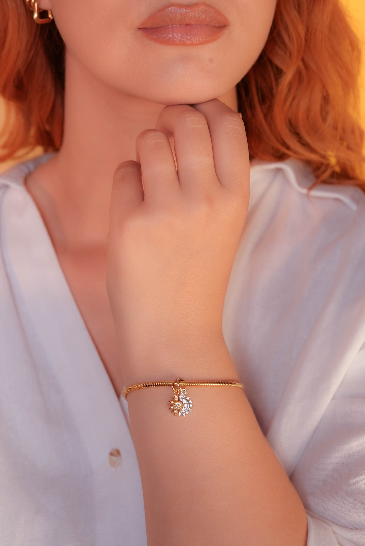 Feli a ales talismanul Soare & Lună (Splittable Sun & Moon Dangle Charm), un simbol cu o încărcătură profundă pentru ea.