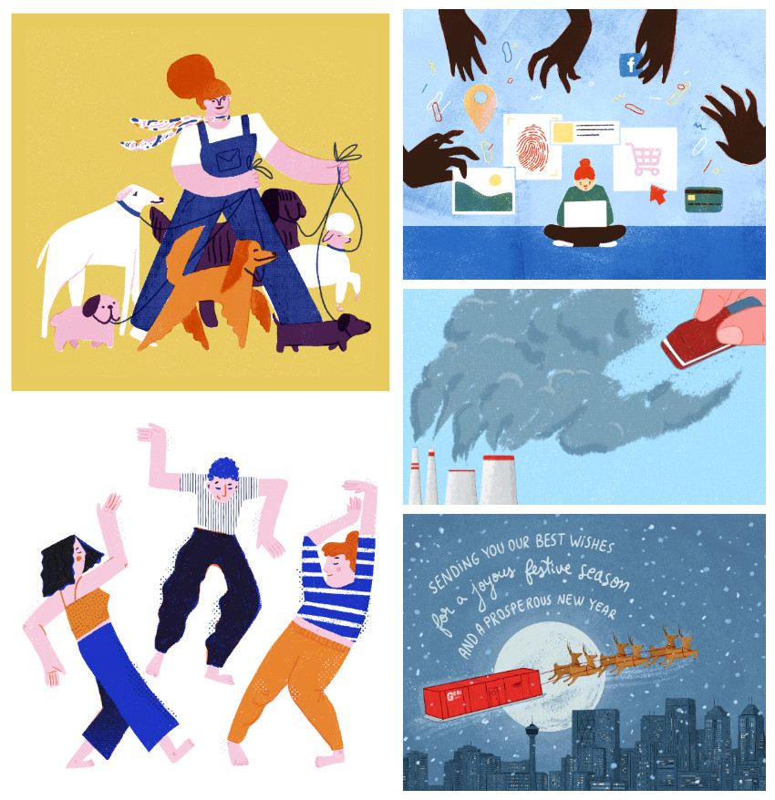 Cele mai multe dintre proiectele mele vin din afara țării. Adevărul e că nu am foarte multă experiență cu clienți din România, în mare parte pentru că nu sunt activă pe Instagram, iar acolo pare să fie adunată toată „piața locală” de ilustrație. Mă plictisește îngrozitor. Poate greșesc, dar nu rezonez cu dinamica platformei.