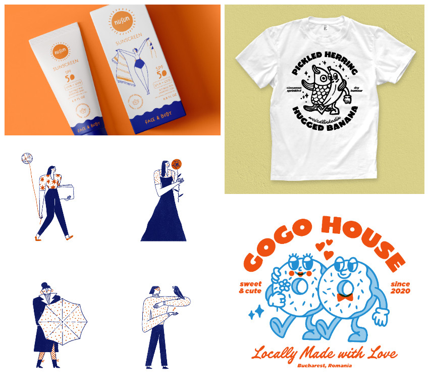 Am avut șansa să colaborez cu clienți din toată lumea, iar expunerea asta m-a ajutat să evoluez rapid, mai ales ca antreprenor. Ilustrația a venit mai târziu, mai mult ca o strategie de diferențiere. Piața de graphic design devenea din ce în ce mai aglomerată, iar dacă voiam să-mi mențin veniturile lucrând mai puține ore, trebuia să ies din turmă. Așa că m-am reorientat spre ilustrație, un spațiu unde am putut să combin umor, idee și estetică într-un mod mai personal și mai ofertant creativ.