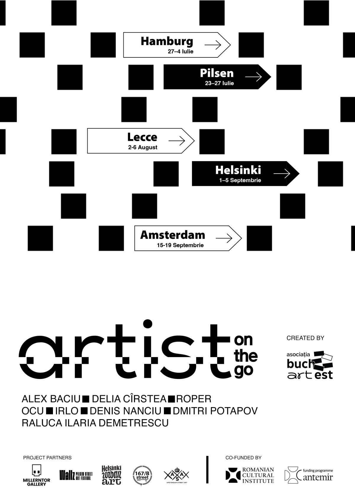 Artiști: OCU, Alex Baciu, IRLO, Raluca Ilaria Demetrescu, Delia Cîrstea, Roper, Denis Nanciu și Dima Potapov